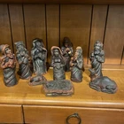Beautiful handmade nativity scene set. I’m not exactly sure of the material ? Possibly clay.? But resembles a little bit like Wood….. Each piece has beautiful details Each piece is about 6-7 inches tall. The set comes with Mary , Joseph, Angel, Wiseman, baby Jesus, a camel, and a lamb.