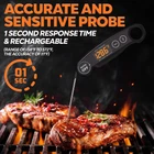 Rechargeable, 1 Second Instant Thermometer, Digital Food Thermometer with 0.5C Accuracy - Waterproof Food Thermometer - Bright LED Display - Kitchen Thermometer for Grilling, Baking, Cooking, Candy Making, BBQ, Camping - Grilling Gifts for Men - Meat Thermometer with Probe 1 SECOND READING TIME & ACCURACY - Be amazed by Super Fast Thermometer, Digital Instant thermometer for cooking (like a PRO!) with lightning-fast 1-second response time. Probe Thermometer guarantees Measurement accuracy: ±0.5°C (±2°F) at -20°C-150°C (-4°F-302°F) with a wide Measurement range: -50°C-300°C (-58°F-572°F). RECHARGEABLE THERMOMETER WITH LED DISPLAY - Kitchen thermometer for cooking and grilling, meat instant thermometer is designed to meet your needs day & night. It is equipped with a rechargeable battery with C-type cable (included) so you do not have to keep replacing batteries. The built in Large Bright LED Display illuminates readings, making it perfect for night time use also indoor or outdoor. The LED will display a low battery icon when the power is low. LOCK FUNCTION & AUTO-OFF FUNCTION - Digital food thermometer, candy thermometer allows you to Hold current temperature function to stop the display from changing readout. Meat thermometer's Auto ON & OFF function makes it convenient for use. Turkey Thermometer automatically turns on when you unfold the probe and turns off automatically when folded with auto off function after 3 mins. WATER & DUSTPROOF THERMOMETER - Instant food thermometer, thermometer with probe is built to withstand the rigors of everyday use. With an IP65 rating, it is protected against water and dust ensuring durability when the type-C hole is closed properly. Can be washed and cleaned in running water. It is waterproof digital food thermometer. CALIBRATION - Can be recalibrated after a long use at temperature near 0°C (32°F) making it last a lifetime! STORAGE, MAGNETIC THERMOMETER - Instant digital food thermometer features a fold away design for easy storage and contains a magnet which allows it to be mounted on Refrigerator. It features a large hanging hole making it easy to store it on a kitchen hook.