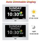 10 Inch Clock with Day and Date for Elderly Large Display Digital Clock12 Alarm 3 Medicine Reminders Large Font Dementia Clock Alarm Clock for Seniors Day Clock White Easy-to-Read Display for Seniors: This digital clock boasts a large 7-inch high-contrast display with bold letters, ensuring optimal readability for elderly individuals. It offers three display modes: Elderly Clock, Wall Clock, and Colorful Clock, making it versatile for various settings. Convenient Reminders: The clock allows you to set up to 5 daily alarms and 3 medication reminders, helping seniors stay on track with their daily routines and medication schedules. Its wall-mounted or tabletop design provides flexibility for placement. Automatic Brightness Adjustment: The clock's brightness automatically adjusts based on the time of day, brightening at 7 AM and dimming at 7 PM. Manual brightness settings are also available for added convenience. Durable and User-Friendly: Crafted from sturdy materials, this clock can withstand accidental drops, making it reliable for seniors. It comes with an easy-to-follow manual and supports multiple languages and time formats.
