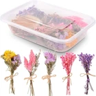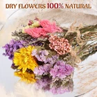 Package Content: You will receive 10 different dried flower bouquets, including Don't forget me, baby's breath, bunny tail dried flower, crystal grass, daisies, lavender, Rice flower (Ozothamnus diosmifolius), etc., in rich quantity and variety, in color, easily meet your daily matching and decoration On demand, it is packaged in flower boxes. 100% Natural Dried Flowers: Our dried flowers with stems are 100% natural flowers, dried from real flowers, and processed by embossing technology, which retains the original color and texture of the flowers, exuding a natural and unique beauty. And wrapped with fine hemp rope, each dried flower is unique, so the color and style may be slightly different from the picture. It may have a light floral scent. Mini Size: These dried flowers bouquets are 3.15 to 3.94 inches (8 to 10 cm) long, delicate and cute. And with a sturdy flower stem, it is easy to insert into a vase. Compared with fresh flowers, these dried flowers can be preserved for a long time and are not easy to wither. Very suitable for DIY handmade, or packaged into mini bouquets, used as wedding decorations or home furnishings, can bring a long-lasting natural atmosphere to the space. Multi-purpose Decoration: This mini dry flowers bouquet can decorate any space, and is very suitable for home, shops, offices, restaurants, banquets, party decorations, gift box packaging and other occasions. You can use this beautiful flower as a decoration on bags, vases, windowsills, desks, etc. This will make your home warmer and full of spring atmosphere, and can also be used for handicrafts. Such as illustrations, ledgers, album decorations. Note: Place the dried flowers in a ventilated and dry place, and do not expose them to the sun for more than half a year. Our dried flowers are made by drying real flowers, and there may be a 5% loss during transportation, which is normal. If you mind, please confirm before placing an order. Product Description Bloom the Beauty of Nature and Inspire Unlimited Creativity! This boxed bouquet we carefully created for you contains ten mini stemmed flowers and a variety of mini flower combinations, such as forget-me-nots, baby's breath, dried rabbit tail flowers, daisies, lavender, and Rice flower (Ozothamnus diosmifolius), guaranteed to be fresh, natural, and exuding a charming floral fragrance. The flowers have been carefully selected and processed to ensure they are brightly colored and beautiful, making them ideal for your wedding, celebration or special occasion. Natural and Real, Never Fade: Each flower is made of natural and real plants and has been carefully processed to maintain its original color and shape. Unlike fresh flowers, they never fade, bringing lasting beauty to your life. Diverse Flower Combinations : We carefully selected a variety of mini flowers, each one a masterpiece of nature. From the elegance of forget-me-nots, to the softness of dried rabbit tail flowers, to the purity of rice flowers, each flower brings a unique color and fragrance. Mini Flowers with Stems : Each flower comes with a stem for easy DIY decoration. It can be cut and adjusted as needed, and can be flexibly used in resin crafts or wedding table decorations. Why choose our bouquets? Our bouquets are not just a simple combination of flowers, but also a reflection of an attitude towards life. They represent a love for the beauty of nature and an exploration of the endless possibilities of creativity. By purchasing our bouquets, you not only gain beauty, but also unlimited creative inspiration and happy moments. Let our bouquets accompany you, light up every corner of your life, and create your own unique flower wonder. Take this bouquet of natural beauty home quickly and start your creative journey!