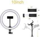 10" USB Ring Light with 60" Extendable Tripod Stand and Flexible Phone Holder & Dimmable Desk Makeup Ring Light for Selfie YouTube Recording/Vlogging/Live Streaming with Wireless Remote Shutter 【10" RING LIGHT:】If you've seen yourself in a lighted makeup mirror, that's a ring light effect. A ring light is a circular lamp (or flash) that surrounds the lens of a camera. This produces even lighting, diffused shadows and a cool halo-effect in the subject's eye. The 10 inch ring light is made of 120pcs SMD LED 15W. High brightness, can provide soft and uniform natural light. It is ideal supplementary product for Live Streaming,YouTube video recording. 【ADJUSTABLE BRIGHTNESS:] This ring light comes with 3 color filters: white, warm yellow, and warm white. You can not only adjust the wide brightness, but also can change the color temperature to 3200K/5500K making it an ideal lighting solution for YouTubers, Photographers and Selfie Lovers. Easy control on cord to power on/off or switch to the lighting mode you prefer. There are 120pcs SMD LED beards of this ring light, long service time more than 50000hrs. 【FLEXIBLE UNIVERSAL PHONE HOLDER & WIRELESS REMOTE SHUTTER】:Rotate holder to the angle you want, and free your hands when making videos/recording with smartphones. Compatible with most smartphones with or without a case. Package include wireless remote shutter which allows you to take selfie-photography or you could separate the controller to take group photos like parties, graduation,wedding, travel. 【STURDY EXTENDABLE TRIPOD STAND:】Extending from 26" to 60", and tripod can be adjusted to any height within seconds as needed, short enough to stand on tabletop, tall enough to fit your height. This compact circle light set comes handy when you do makeup, artworks, beauty & fashion live streaming, video calls and more. 【FEATURES】: The 10 inch ring light is made of 120 pcs SMD LED,15W.The ring light is powered by USB port, which can be easily used with a variety of devices, such as computers, notebooks, mobile power supplies, USB adapters, etc. The 5V operating voltage ensures safe touch and energy savings. Light Color - white, warm yellow, Soft lightBuilt-in high-quality SMD LED lights and diffuser made of superior PC with high toughness, heat resistance, flame retardancy, Product description FEATURES: ADJUSTABLE BRIGHTNESS: This ring light comes with 3 color filters: white, warm yellow, and warm white STURDY EXTENDABLE TRIPOD STAND: Extending from 26" to 60", and tripod can be adjusted to any height within seconds as needed FLEXIBLE UNIVERSAL PHONE HOLDER: Rotate holder to the angle you want, and free your hands when making videos/recording with smartphones Description: Power: USB plug Type: Ring light with stand / ring lamp for makeup Ring Light Size: 10 inch Light color: white light, warm light, soft light Material: Aluminum+PC Dimming range: 1%-100% Light Source: High quality LED SMD Power: 15W Package Include: 1 x LED Light Light 1 x Diffusion 1 x USB Power cord 1 x Flexible clamp 1 x Tripod 1 x Box