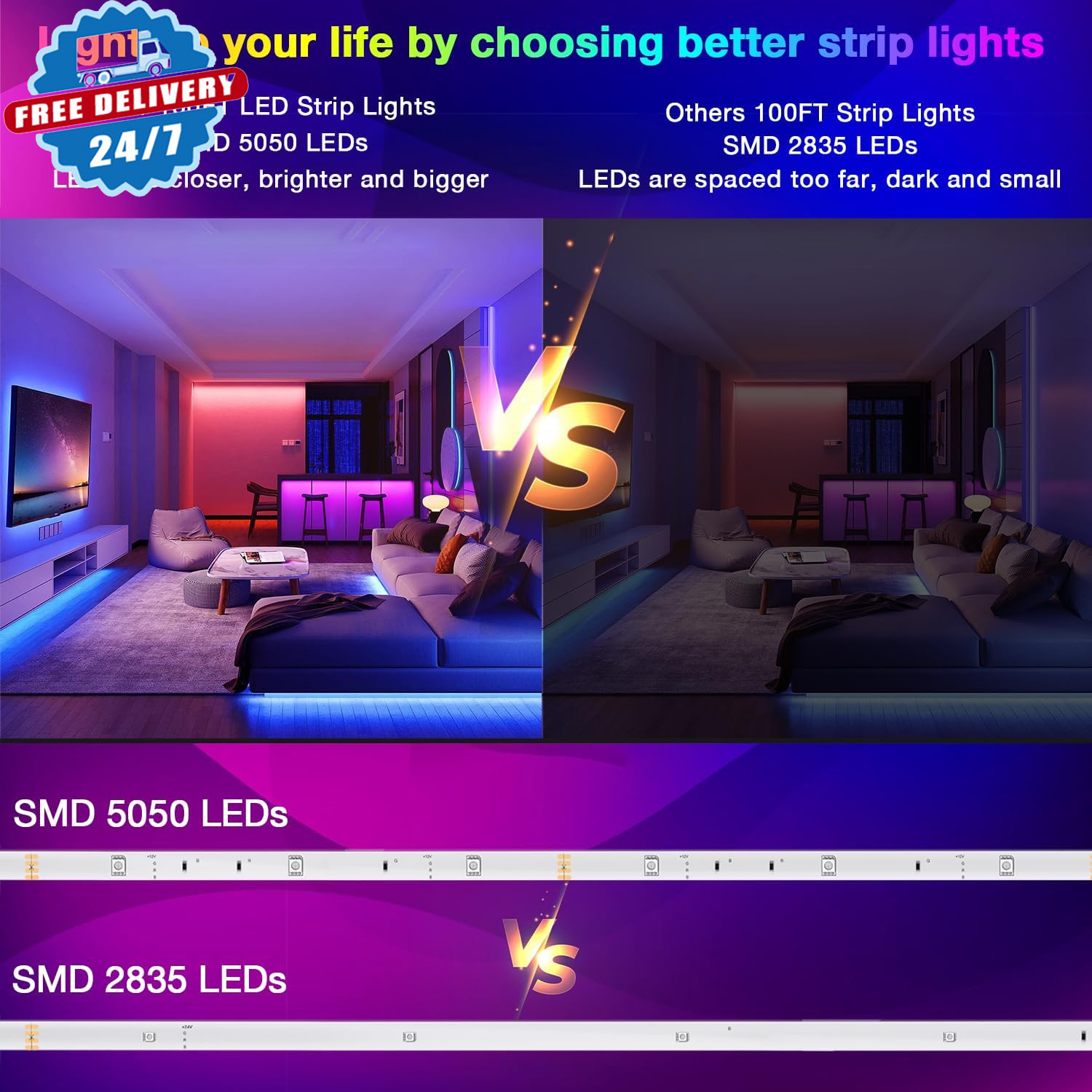 Store New Arrivals Add to Favorite View Feedback Contact Led Strip Lights 100 Ft Smart with App Remote Control, 5050 RGB for Bedroom, Living Room, Home Decoration, Music Sync Color Changing for Room Party(2 Rolls of 50 Ft) Description Item model number FLSL-DB-501115RGBUS Light Source Type LED Style Modern Number of Items 1 Power Source Corded Electric Number of Light Sources 480 Control Method App Theme Music,Wedding Batteries Included? No Controller Type App Control Connectivity Protocol Bluetooth Wireless Communication Technology Bluetooth Material Metal Number of Batteries 3 A batteries required. Package Dimensions 11.79 x 9.49 x 0.71 inches Included Components Remote Control Indoor/Outdoor Usage Indoor Light Color RGB Water Resistance Level Not Water Resistant Batteries Required? No Item Weight 11.7 ounces Connectivity Technology Bluetooth Occasion Wedding Special Features Timer, App Control, Color Changing Special Feature Timer, App Control, Color Changing Part Number RGBUKVC01 Color Multicolor Wattage 12 watts Global Trade Identification Number 00706047185549 Batteries 3 A batteries required. Voltage 24 Volts Size 100FT Smart app and ir remote control: The 100 feet led strip lights support both app and 24 keys ir remote for control, which allow you change the led lights color and modes are conveniently for bedroom, ceiling, kitchen, living room, and party decoration Easy installation: The led strip lights 100 feet, 2 rolls of 50 feet, ultra long is enough to reach around your entire bedroom and light up the whole home for party, wedding indoor Music sync: Led lights strip color changing sync to music by smart phone with app, make your party up to the high peak, light up your life and makes life more colorful and wonderful Smart timing settings: With timer function, the rgb led strip lights allow you to pre set time to turn on off led lights and change color at certain times, just enjoy it in a smart way Led strip features: Our led strip use 5050 LEDs, the effect will be more dense and bright, not only rich in color but also very durable Flexible cuttable: You can also cut the length of the light strip according to your own needs, just be careful that you should cut where the copper wire is marked (packaging without the lights connector, you need to purchase 4 pin connector) Product Description Add to Cart Add to Cart Add to Cart Add to Cart Add to Cart Customer Reviews 4.3 out of 5 stars 2,603 4.5 out of 5 stars 2,145 4.3 out of 5 stars 3,885 4.3 out of 5 stars 7,494 4.3 out of 5 stars 2,603 4.3 out of 5 stars 22,896 Price — $18.47 $ 18 . 47 $8.99 $ 8 . 99 $36.99 $ 36 . 99 $19.99 $ 19 . 99 $28.99 $ 28 . 99 APP Control X ✓ ✓ ✓ X ✓ Length 32.8FT 16.4TF 15FT 6 Pack 40FT 100FT Led Strip Lights 100FT for Whole Home Decoration Please note: the smart remote control allowing you turn the lights on or off, dim or bright, set lights to daylight white, soothing green, dancing rainbow, or any pattern you like using only your voice. Decorative lights for holidays, events, parties, shows, exhibitions. Applicable also for the decoration of TV back light, computer. Lighting for bedroom, kitchen, cabinet. hotels, clubs, bars, malls. ABOUT US We offer the best prices around on high quality products. Our E-store includes media such as books, movies, music and games while offering electronics, toys, sporting apparel, clothing, tools, general home, garden items and more. SHIPPING We are always working hard to ensure your package arrives as soon as possible. Please understand that some factors like weather, high postal traffic, and the performance of shipping companies are outside of our control. We offer free shipping to the lower 48 states and ship within 2 business days of payment, usually sooner. We do not accept P.O. Boxes. Please provide a physical address. RETURNS We offer a 30-Day Return Policy on items which you are not completely satisfied with. You have the option for a full-refund or an exchange of the item. No returns are available on items shipped outside of the USA. PAYMENT We accept PayPal. CONTACT US This page content is yet to come Please ad us to your favorite seller and visit again later Thank You CUSTOMER SATISFACTION We try our very best to make sure every customer is completely satisfied. If there's a problem, message us! We're happy to help.