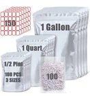 Kit Includes: 40-1 gallon bags (10”x14”) 30- 1 quart bags (6”x9”) 30-small bags (4”x6”) 100-Labels 100-oxygen absorbers 8.3 MIL thick Keep your food fresh for longer with these 100 zip seal Mylar bags. Perfect for storing all kinds of food items, these bags come equipped with oxygen absorbers to ensure that your food stays fresh and tasty. Available in multiple sizes including gallon, quart, and small, these silver bags are made from durable Mylar material that provides a strong barrier against air and moisture. Ideal for use in the kitchen, these bags are perfect for storing a variety of food items such as grains, dried fruits, and nuts. These bags are made in China and come with a range of features including zip seal closures, making them easy to open and close. Get your hands on these Mylar bags today and start keeping your food fresher for longer!