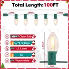 🎄Why do you choose C7 LED Christmas String Lights?🎄 👍Reliable Material Our C7 LED string lights for outside are produced with high quality plastic bulbs and a heavy-duty cord, making them able to withstand extreme weather conditions. IP65 waterproof ensures that they are safe to touch and perfect for both outdoor and indoor decoration. 🎉Easy to Install With a durable and flexible copper wire, these vintage hanging string lights waterproof are easy to install and can be shaped and molded to fit any space. The copper wire is also rust-proof and weather-resistant, so you don't have to worry about wear and tear. 🎊Indoor Outdoor Decoration Lights Our Christmas patio string lights are UL listed for indoor and outdoor use. Each light socket has a link that you can easily attach the lights to your Christmas trees, Christmas decor or other desired surfaces, quick & easy to set up your warm white c7 Christmas lights in minutes, adding an warm white glow to your outdoor garden path and welcome the coming Christmas. 🍾 Specifications - Bulb Type: C7 LED - Base Type: E12 (Candelabra) - Voltage: 120V - Wattage: 0.6W per bulb - Lifespan: Up to 25,000 hours - Power input: 120V~, 60Hz - Lighting mode: steady on 💛Warm Tips 1. Do not mount or place near gas or heaters, fireplace, candles or other similar source installation. 2. If the string light connected with more strings and do not work, please check the max connectable strands (4 strands 100FT) or make sure they are properly connected. 3. The string lights will keep lighting if bulb is broken, you can replace it with our additional spare bulbs. Safe and Durable String Light: Our c7 outdoor string lights come with advance materials and UL listed, which are safer than normal incandescent lights. The heavy-duty green cord made up with PVC cable jacket and high copper that can withstand the wear of indoor and outdoor use. The IP65 waterproof LED Christmas lights either with a built-in spare fuse (120v) for easy , ensuring safe and long-lasting use. Smoothly Dimmable Performance: Adopted advanced dimming technology, our dimmable hanging roof-line string lights with 90%+ dimmer switch in the market, allowing you to dim the brightness from 0%- 100% stable at will, creating the perfect atmosphere for Christmas Halloween holiday birthday party, family reunion or wedding celebration. (Please note: Dimmers are not included) 90% Less Bill Cost: Every C7 Christmas light string outdoor 100FT contains 66+1pcs E12 socket LED bulbs(1 spare bulbs). Each bulb built in high-efficiency led chip, consume 0.6W only while lasting 25000+hrs long lifespan, the low wattage light bulb is more than 90% energy efficient than incandescent bulbs. So you can enjoy the romantic atmosphere without wasting your money. End to End Connectable Lights: 12" lead with male plug, 12" spacing between bulbs, 18" tail with female connector. Our E12 commercial string lights 100FT are end to end connectable up to 432W (4 strands 100FT) to decorate your Christmas. And the C7 vintage clear bulbs are removable that provide flexibility for easy and custom designs. connectable LED Christmas lights perfect for fence, garden, patio, roof, backyard, Christmas decoration. Vintage Christmas Lights: Our C7 vintage Christmas Lights shatterproof glow a warm white lighting, combined with clear lights bulbs & green wire. It’s a perfect Christmas decoration light string for your home, holidays, winter, , backyard, garden, patio, wall, gate, yard, Christmas tree, window, party. You can enjoy the bright and romantic holiday atmosphere.