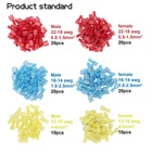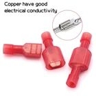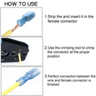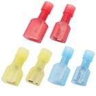 Detailed dimensions: Red Wire range: 0.5~1.5mm², A.W.G.:22~16, Max.current = 19A Blue Wire range: 1.5~2.5mm², A.W.G.:16~14, Max.current = 27A Yellow Wire range: 4~6mm², A.W.G.:12~10, Max.current = 48A Material: Copper + Nylon Standard: ROHS3 The temperature tolerance is from -67 to 257 F. Low insertion force to mate easily with UL-compliant male tabs while maintaining a high retention Connection Steps: Strip the wire and insert it in the connector. Use the crimping tool to crimp the connector.Perfect connection between the wire and connector is finished. NOTE: For best results, please use profession crimping tool Friendly Customer Service & Warranty As trusted company,we always provide the best product, pre-sale and after-sale service, We guarantee that all our products are 100% Strict QC to assure the quality. If for any reason you are not satisfied with your purchase, please do not hesitate to contact us. WHAT YOU GET:3 SIZE of high-quality male and female spade connectors,total 100 pieces. Material: Nylon fully insulated A.W.G. male insert wire connector and female socket wire connector. Wire Range:22-16 A.W.G;0.5-1.5mm²(Red);16-14 A.W.G;1.5-2.5mm²(Blue);12-10 A.W.G;4-6mm²(Yellow) Crimp easy, without the insulation cracking around the crimp.Convenient to Replace,No need to wrap the tape. The translucent tubing allows for visual inspection of inserted wiring for accurate crimping