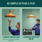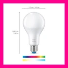 PLC 14.5W (100W)A21 WIFI COLOR 1PK ACTIVATE WITH MOTION - With a minimum of two WiZ lights in the same room at least 2m/6.56ft apart you can activate SpaceSense feature in the app and lights will turn on and off automatically when they detect motion - no sensors needed! 16 MILLION COLORS - The WiZ color LED bulb offers millions of colors to help you create the perfect lighting for any moment. Once you've found a favorite mix of color save your scene and select it anytime using the app or your voice. HUMAN-CENTRIC LIGHTING - This candle-shaped bulb also allows you to choose from different shades of warm to cool light to create the best ambience for your activities. Not sure which is right? Simply select from preset modes like Focus or Relax. EASY TO SET UP - Start enjoying the benefits of the smart features instantly. Just screw in your new bulb download the app, and connect to 2.4GHz Wi-Fi! No need to install additional hardware such as a hub or gateway. EASY TO USE - Adjust lights with your smartphone voice, the WiZ remote control, or by using your existing wall switch to toggle between two favorite modes. Works with Google Home, Alexa, and Siri Shortcuts. EASY TO AUTOMATE - Using the app you can schedule your lights to automatically turn on and off, dim, or change color according to your daily or weekly routines. Even when you're not at home, you'll always have access. EASY TO MONITOR - The app can also provide an overview of the energy consumption of your lights. Easily access a historical view live view, or reports on energy usage by hour, day, week, room, or device. MATTER COMPATIBLE - Matter is a unifying protocol for smart homes to further improve simplicity- compatibility- reliability- and security across smart home products. It simplifies smart homes for all stakeholders.