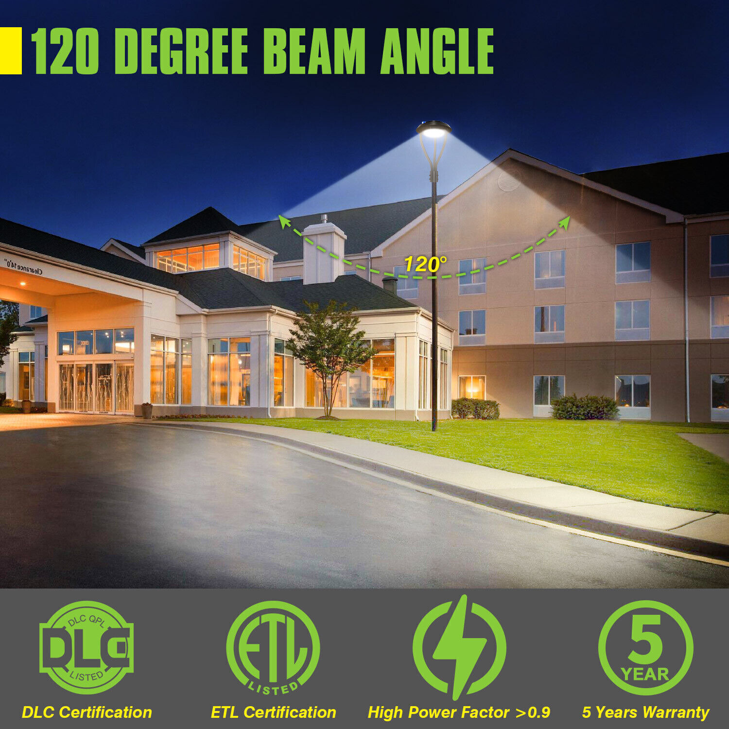 Product Description 100W Outdoor Street Garden Pathway Yard Parking Lot LED Pole Light Dusk to Dawn Light Up Larger Area - The 100w light post bring 14000Lm with SMD3030 chips, up to 140lm/watt, AC 100-277V universal voltage and 120°beam angle. 5000K color temperature of lighting is a nice choice for street light illumination. Anti-shock, anti-moisture, no glare, no strobe light, no ghosting, protecting your eyes. Dust to Dawn Photocell - The Led circular post top pole light comes with photocell sensor outside automatically turns ON at sundown/night and light post at sunrise/daytime with dusk to dawn, high power factor >0.9, more than 50000hours lifespan, reduce your electricity consumption, save your electronic bill. Provides a continuous, efficient outdoor lighting environment. Commercial Grade Material - The DLC/ETL Listed post pole light fixture made of die-casting aluminum body + protective glass cover. The scientific design helps the exterior light post top to dissipate better, achieve the best use of the led lighting post. IP65 waterproof for drying, wet environment, sandstorms, snowstorms, and harsh weather conditions. Wide Application - The circular post top design give the lamp a uniform brightness and can be applied to a variety of outdoor scences, such as pathway, street, front yard, city expressway, trunk/rustic road, factories, playground, school, garden, courtyard, parking lot, public park, walkway, exterior, driveway, store, farmyard or any other commercial and industrial area. Installation and Warranty - The pole mount of our post area light fits for a 2 3/8-inch OD tenon & less than or equal to 3 inch standard pole, very easy to install and transfor(Please see the video on the product page for more installation info). KUKUPPO offer you lasting safety and reliability backed by a 5-year warranty. For a bulk order, email us in advance to get a different offer. Specifications: Rated Wattage: 100W Luminous Flux: 14000Lm Color Temperature: 5000K Protection Grade: IP65 Material : Aluminum Body+Glass Cover Input Voltage : AC100-277V 50/60Hz Dimension: Dia 400x650 mm Base: 2 Pins Wire Power Factor: >90% Beam Angle : 120 degrees Average Lifetime : More than 50000 hours Flexible Installation The pole mount of our post area light fits for a 2 3/8-inch OD tenon & less than or equal to 3 inch standard pole, very easy to install and transfor Commercial Grade Material DLC/ETL Listed quality. Scientific design helps the exterior light post top to dissipate better, achieve the best use of the led lighting post. Durable Support Rod Made of thick aluminum, stable and strong, waterproof and rustproof. High performance quality provides with lasting safety and reliability. Ultra Bright LED Chips With SMD3030 chips, up to 140lm/watt. Anti-shock, anti-moisture, no glare, no strobe light, no ghosting, protecting your eyes. Kindly Note Please note that the light can not be used IN the water. Please confirm the wire connection is right while installing. About Us Payment Shipping Returns Contact Us SHENZHEN NUOGUAN TECHNOLOGY CO. LTD founded in 2010. We are high-technology comany specialized in manufacture Commercial and industrial LED light. Advanced production equipment and excellend R&D ability help us to combining service ,production sell together provide top-level products to our customers. 1. Payment is expected within 7 days of auction close. Or Unpaid Items will be forfeited per eBay . 2. Taxes may be applicable at checkout as states adopt new laws and regulations regarding sales tax collection. 1. We ONLY ship to USA . 2. Orders processed within 1-2 business day of payment verification. There’s no Delivery service or courier service on Saturdays, Sundays or Public Holidays. 3. We have 3 different warehouse in US,so due to stock status and time differences, we will choose to ship your item from our first available warehouse for fast delivery. 4. We offer Free Shipping within the Lower 48 states! All packages are sent via UPS or USPS.The delivery time for UPS Ground is typically 2-5 business days. We strive to ensure 100% satisfaction for each and every one of our customers. we offer a 30-day 100% money-back guarantee on all eBay orders. If your item isn't just as you wished, simply send it back to us and we'll refund or replace your item. Please note that all returns must be authorized by our Customer Service department. please contact us though message first if you have any problem. USA Warehouse. Fast shipping! We are appreciated your purchasing form our eBay store. Office Time: 9:30 - 18:30, Monday - Saturday (UTC+8) Please contact us with eBay Message. We will respond you within 24 hours on business day. About Us SHENZHEN NUOGUAN TECHNOLOGY CO. LTD founded in 2010. We are high-technology comany specialized in manufacture Commercial and industrial LED light. Advanced production equipment and excellend R&D ability help us to combining service ,production sell together provide top-level products to our customers. Payment 1. Payment is expected within 7 days of auction close. Or Unpaid Items will be forfeited per eBay . 2. Taxes may be applicable at checkout as states adopt new laws and regulations regarding sales tax collection. Shipping 1. We ONLY ship to USA . 2. Orders processed within 1-2 business day of payment verification. There’s no Delivery service or courier service on Saturdays, Sundays or Public Holidays. 3. We have 3 different warehouse in US,so due to stock status and time differences, we will choose to ship your item from our first available warehouse for fast delivery. 4. We offer Free Shipping within the Lower 48 states! All packages are sent via UPS or USPS.The delivery time for UPS Ground is typically 2-5 business days. Returns We strive to ensure 100% satisfaction for each and every one of our customers. we offer a 30-day 100% money-back guarantee on all eBay orders. If your item isn't just as you wished, simply send it back to us and we'll refund or replace your i