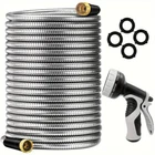✨Specification: Material: Stainless Steel Type: Water Gun Characteristics: outdoor metal hose items length Color: silver Item length:100 ft Item weight: 3.87 pounds ✨Features: 【Metal Garden Hose 100FT】- The 100ft metal water hose is encased in 304 stainless steel, providing effective protection against punctures from sharp objects or bites from pets. The metal water hose can also operate efficiently in both high and low temperatures, ensuring a longer service life for the water hose. Bid farewell to the annual ritual of water hose shopping and say hello to savings. 【Real Leak Proof】 - Featuring a dependable brass connector, built-in leak-proof rubber ring, this metal garden hose ensures a secure, leak-free connection to your water source.The 3/4-inch Anti-leak Connector is designed to fit typical outdoor garden taps in the US. It not only connects different joints but also allows you to join two hoses together to extend the hose's length. 【Flexible and Maneuverable】 - Our Metal Garden Hose 100ft is crafted to be lightweight and exceptionally flexible, Can be used for watering gardens and cleaning houses, cars, yards, pet bathrooms, and so on. Additionally, 100ft hose is the most popular size option and can easily cover your entire yard. 【Water Saving and Plant Friendly】- The 100ftmetal hose comes with a 10-pattern hose nozzle. You can freely control the spray mode to adjust the water flow size. The gentle water flow won't harm plants. 📦Package Includes: 1X Hose With Nozzle Set On Sep 20, 2024 at 23:01:17 PDT, seller added the following information: On Sep 23, 2024 at 07:20:55 PDT, seller added the following information: