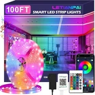 100ft Led Strip Lights,Long Smart Led Light Strips Music Sync 5050 RGB Color Changing Rope Lights,Bluetooth APP/IR Remote/Switch Box Control Led Lights for Bedroom,Home Decoration,Party,Festival ☀【100FT/30M Super Long LED Strip Lights】Innovative 1rolls of 100ft Color Changing RGB light are long enough to light and decorate your whole house! Now use this versatile led lights to brighten your bedroom, living room, kitchen, cabinet, stairs, back of TV, garage and more places. It is also an ideal décor for party, weddings, festival like Christmas, Halloween etc., Comes with exquisite packaging, It’s also a great choice as a gift for your families and friends, they must be fascinated by it ☼【Dream Color Brighten Your Life & Atmosphere Planner】The strip lights made with high-bright 5050 LEDs emit vibrant colors to create a colorful world! You can freely to choose 16 million vivid colors and 29 dynamic modes such as flash, rotate, fades depending on mood to suitable for various occasions. The music mode is very suitable for festive to create a romantic ambiance with families. The MIC mode is cool that brings cheerful atmosphere for party with friends! ☺【Easy Install&User-friendly Control Ways】This LED Light Strips can be installed in seconds with strong 3M adhesives, cuttable design allows to be adjusted to appropriate length, just peel and stick, plug and Play. 2 Ways to Control: ①Download the "HiLighting" App to adjust light colors, brightness, setting timing etc., ②Comes with an Upgraded IR remote control so you can adjust the lights more easily. ♫【Multifunctional Strip LED Lights】 Be your smart lighting tool! ①With Music & MIC mode, you can sync to music and enables you to enjoy the fun with color-changing following the music rhythm or your voice. ②With Dimmer function, you can easily adjust the light brightness from 0% to 100% when you are watching TV or sleeping. ③With Timing function, you can pre-setting the appropriate schedule to make it auto turn off at sleeping time, and be your “alarm clock” in the morning. ♕【Quality Assurance & 】 All accessories of our LED rope lights are officially certified. the certified power adaptor was tested rigorously which is safe for use, the lights run at a low temperature and consume low energy. We promised Five stars products and customer service. If you have any issues during installation, contact me directly and we will get it resolved within 24 hours. resolution or free are provided in quality-related issues.