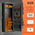 10-14 Gun Safe for Rifles and Pistols,Quick Release Fireproof Gun Safe - NEW About this item [Solid & Durable Material]:Greenvelly 10 gun safe for rifles and pistols made of high density cold rolled steel plate is treated by advanced baking process.This process makes gun cabinet have a good corrosion resistance to high and low temperature and easy to clean. The locking door of the gun safe adopts a high-strength bending process, which brings a good thick feeling and improves the overall stability. Choice [Anti-Theft Design]:Greenvelly fireproof gun safe is characterized by the 4*20mm diameter locking bolts,tamper-resistant steel doors and heavy-duty tamper-resistant hinges.You need the right code and key to open it, and it's hard to pry it open. And we designed reserved holes in the bottom and back for fixing on the wall or Floor.The sturdy construction ensures that guns are kept away from children and prevents theft.The gun safe suit for garage,home,office,etc.. [Size&Large Storage]:Greenvelly gun safe (15.2"D x 21"W x 55.21"H) can store 10 rifles,each one has a adjustable shelf, could hold up to 180lbs;gun racks could be adjusted on the pegboards according to the height of the long guns,meanwhile,the bottom is fitted with a protective pad to prevent damage;The back of the door is equipped with 4 pistol bags, a bullet bag and a handgun bag.You could store goods according to your needs. [Digital Password Lock]:Greenvelly locking large gun cabinet adopt digital unlock module.You could choose 3-8 digits as the unlock password.Besides, the gun safe equipped dual alarm system. There are indicator lights on the digital lock to indicate the opening&closing state or whether the battery is in a low state.The digital password lock can be charged in a low battery sate.And we provide 2 emergency keys,Using a key to open is the second way to open it. [Easy to Install]:Greenvelly is a company of specialized in the gun safe for rifles and pistols.Each gun safe cabinet provides paper and video about Installation instructions. Even if you don’t have any DIY experience, you could easily assemble it.At the same time, we will also answer your questions about the products. Product information Brand Greenvelly Color Black Recommended Uses For Product Guns Product Dimensions 15.21"D x 21"W x 55.2"H Special Feature Alarm System, Combination Lock, Anti-Theft, Removable Shelf, Fireproof Mounting Type Floor Mount Door Style Sliding Doors Included Components Bags, Keys, Shelf, Anchor Bolts Number of Shelves 1 Installation Type Freestanding Top Material Type Steel Back Material Type Carbon Steel Assembly Required Yes Frame Material Metal Number of Compartments 3 Number of Levels 1 Number of Racks 1 Lock Type Electronic Combination Lock Global Trade Identification Number 00784227720896 UPC 784227720896 Manufacturer Greenvelly ASIN B0DG86ZY1G