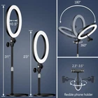 BRIGHTER & SOFTER: This desk ringlight features an large 10.5 inch lamp head, its curved design sets it apart from other flat lamp. We've enhanced the lampshade with an upgraded, thicker coating to provide brighter illumination while avoiding dazzling problems. Our webcam light will not produce glare even after long hours of use, effectively protecting your eyes! This ring lamp is perfect for any situation, whether you're conducting a virtual class, zoom meeting, remote work or video conference DIMMABLE LED LIGHT: Enhance your lighting game with our halo light! This desktop circle light offers 3 color temperature modes (cool, natural, warm light) and 10 brightness (3000K-6500K), perfect for video recording, live streaming, vlogging, makeup, podcasting, blogging, video calls, , TikTok, photography, and more. Whether you are at home or in the office, you can use this versatile bright and soft fill lamp to light up your life and radiate beauty DYNAMIC DESK LIGHTING: Illuminate your workspace flexibly with our height adjustable computer ring light. This versatile video light features an adjustable stand, ranging from 22 to 29 inches (measured from the base to the top of the head). Easily tailor the height to match your laptop, computer, monitor webcam, or setup. With a flexible lamp head that can be freely adjusted 180 degrees back and forth, finding the perfect lighting angle and illumination for your task has never been easier ILLUMINATE YOUR BEAUTY: Elevate your online presence visibility with our video conferencing light! This tabletop face light will bring focus and clarity to your online interviews and presentations. Whether you're conducting webinars, teleconferences, or simply want to enhance your FaceTime or Teams calls, this Zoom light will take your video calls to the next level. It's perfect for WFH, bloggers, streamers, and anyone looking to make a lasting impression. UPGRADE YOUR CONTENT CREATION: This selfie ring light with stand and holder is perfect for influencers and content creators who wants to take their pictures and to the next level. It features a 360° bendable metal hose to hold your cell in place, and the metal base offers greater versatility than clamp on ring light, fitting perfectly on any desk. Say goodbye to shaky and unstable photos! Enjoy the convenience with our USB desk light to make your work lighting anywhere CUSTOMER SUPPORT: At , we're always looking for ways to make our products even better! We want you to have the best experience and enjoy the highest quality lighting. That's why we offer a 3-year after-sales service to give you peace of mind. If you have any questions or need help, our friendly team is always here to help