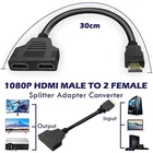 HDMI Splitter Adapter Cable, 1080P HDMI Splitter 1 in 2 Out, HDMI Male to 2 HDMI Female 1 to 2 Way Splitter Cable for HDTV, LCD Monitor and Projectors Compatible Devices Laptop Specific Uses For Product TV, Xbox, Projector Connector Type HDMI Color Black Brand Hididi About this item Function: This HDMI Splitter Adapter operate as a signal router, can distribute 1 HDMI input signal (Such as: HD - DVD, Bule - ray DVD, Xbox, Xbox360, PS3, STB, Notebook, So-ny HDTV ) to two Visual HDMI Output Devises (such as, HDTV, Monitor, etc.). Advantage: Gold_plated Connectors for better signal transfer.Allow to connect HDMI devices that have Build-in HDMI ports, like HDTV, PlayStation 3, Upconvertor DVD Player, LCD Monitor and projectors. 1080P Resolution: This HDMI Splitter supports HD resolution, including 480i, 480p, 720p, 1080i, 1080p. Easy to use: HDMI Splitter 1 in 2 out Just plug in and it plays, please connect it to the corresponding connector. (Package include: 1 Piece HDMI Male to 2 HDMI Female Splitter.) Length: 12.2 inch Please Note: Only 1 output device should be active at any time. It cannot support 2 displays being active at the same time, please close one display when you want to use another. Does not support any Laptop or Computer. And not Support HDCP. It does not work on TV boxes/cable boxes like Ro-ku.