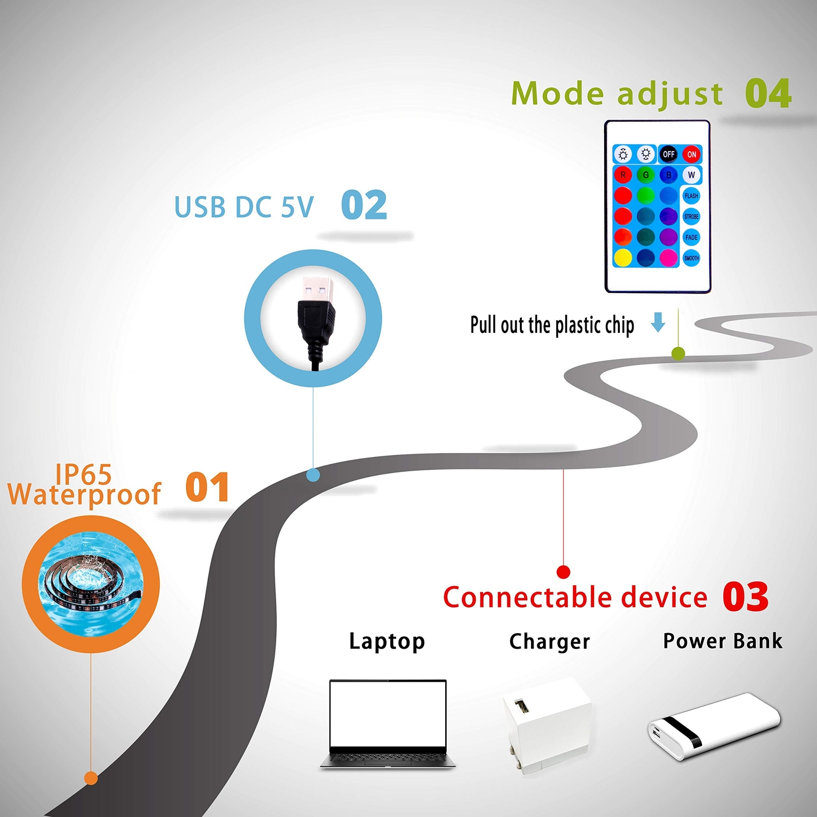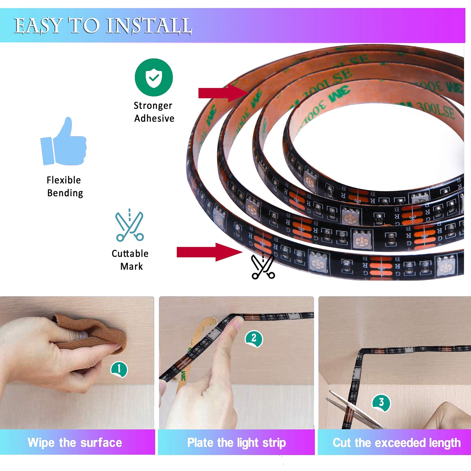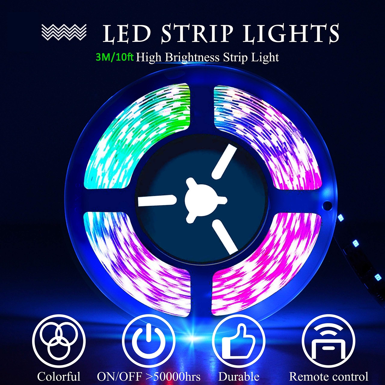 Led Strip Lights 10Ft RGB Color Changing Led Light Strip with Remote for Bedroom Home Decoration Kitchen ✓ Free 60 Day Returns ✓ Free Express Shipping Description: Features: Various Color Choices Multi color led strip lights 10ft is featured with not only 16 basic colors, but also 4 dynamic light modes. You can make the led strip lights show varieties of different color changes in different scenes. Remote controlThe infrared remote can control to remotely control the led strip lights to suit the mood of the room easily; You can set it according to different scenes until you are satisfied. Cuttable and Linkable Design The led strip lights can be easily cut and linked with other strip led lights.It can be cut every 3 LEDs along the cutting marks if you don't need such a long lights or you could extral connectors to extend the lights for your bedroom, TV, desk, computer indoor. Easy InstallationThe led strip lights are made with strong adhesive, which makes it stick stronger on dry and smooth surface; You don't need to worry about falling off. Multiple Scenes AvailableRGB led strip lights is a suitable house ornament, transforms your home, bedroom, kitchen, ceiling, back of TV, desk, stairs, bar, computer and more with color changing lights. Product Details: Color: Multicolor Brand: PJJKR Indoor/Outdoor Usage: Indoor Special Feature: Remote Control, Color Changing Light Source Type: LED Power Source: DC Light Color: RGB Theme: Tv Occasion: Christmas, Halloween Style: Modern Package Dimensions : 6.46 x 4.37 x 0.91 inches; 4.16 ounces Date First Available : December 23, 2020 Manufacturer : PJJKR Customer Reviews: 3.8 3.8 out of 5 stars 103 ratings Color: Multicolor Brand: PJJKR Indoor/Outdoor Usage: Indoor Special Feature: Remote Control, Color Changing Light Source Type: LED Power Source: DC Light Color: RGB Theme: Tv Occasion: Christmas, Halloween Style: Modern Material: Vinyl, Metal Controller Type: Remote Control Connectivity Protocol: USB Connectivity Technology: USB Number of Light Sources: 300 Voltage: 5 Volts (DC) Wattage: 2 Watt-hours Control Method: Remote Water Resistance Level: Waterproof UPC: 653871295480 Manufacturer: PJJKR Item Weight: 4.2 ounces Package Dimensions: 6.46 x 4.37 x 0.91 inches Special Features: Remote Control, Color Changing Light Direction: Adjustable Plug Format: USB Batteries Included?: No Batteries Required?: No Luminous Flux: 50 Lumen Date First Available: December 23, 2020