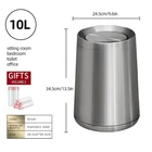 【Unique shape】This 2.6Gal conical silver trash can with lid features a unique conical design and that Swing top allows for easy daily use and to seal out odors and keep pets out 【Advanced function 】Removable inner barrel, anti-fingerprint, anti-slip base rubber pad, quiet clamshell, stainless steel wire drawing process 【Durable and wear-resistant】The silver trash can is durable, made of thickened stainless steel and processed by multiple processes. It can be used for many years once purchased 【Color selection】We can provide gold, black, white,sliver, rose gold and other colors, which can be selected according to the decoration style, suitable for bathroom, living room, bedroom, hotel, business and other indoor occasions 【Size Giveaway】Size: Diameter*Height 9.6*13.5in ,1 roll of drawstring garbage bag for each bucket