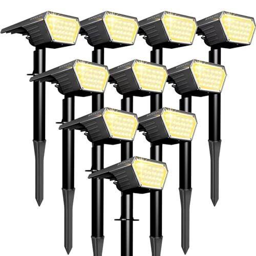 These solar spot lights are fantastic! They automatically turn on at dusk and off at dawn, saving energy while lighting up my garden beautifully. The warm white glow is cozy, and the two brightness modes give great flexibility—longer runtime on dim or brighter light when needed. Super easy to install, waterproof, and the 10-pack is a steal for the price. Fast shipping and reliable seller—highly recommend for pathways, yards, or accent lighting!