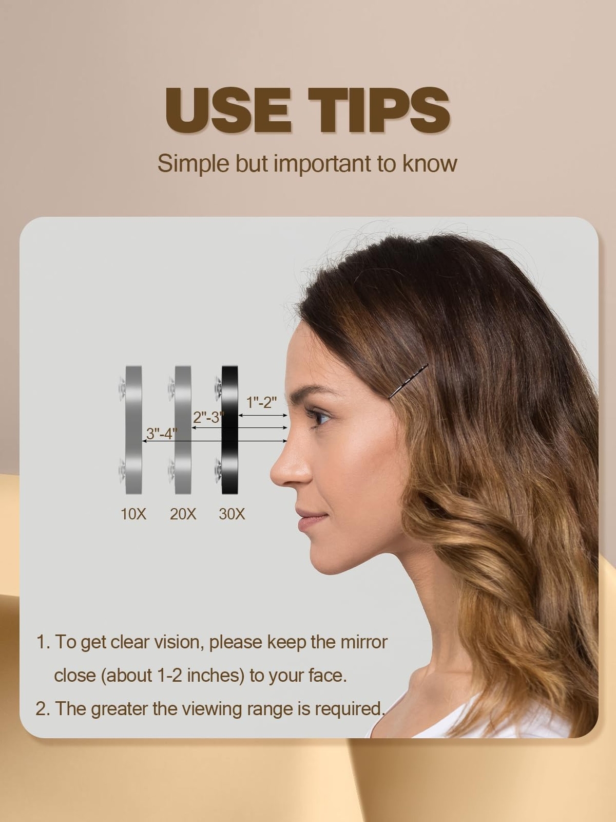 10X&30X Magnifying Mirrors with Suction Cups and 2 Tweezers Set,3.5 inches Magnified Makeup Mirror, Black, 2PCS Product Details Color: Black Brand: Macaki MPN: 24SCM02-2P UPC: Does not apply EAN: Does not apply Brand: Macaki Room Type: Bathroom, Bedroom Shape: Round Product Dimensions: 3.5"L x 3.5"W Frame Material: Plastic Brand: Macaki Room Type: Bathroom, Bedroom Shape: Round Product Dimensions: 3.5"L x 3.5"W Frame Material: Plastic Style: Modern Mounting Type: Wall Mount Special Feature: Portable, Lightweight, Compact, Magnifying Color: Black Theme: Nature Specific Uses For Product: Makeup Number of Pieces: 2 Number of Items: 2 Material: Stainless Steel, Glass, Plastic Frame Type: Framed Assembly Required: No Frame Color: Black Manufacturer: Macaki Item Weight: 5.3 ounces Country of Origin: China Item model number: 24SCM02-2P Date First Available: April 23, 2024 Magnifying Mirror with 10X&30X Kits for Every Need. 10X mirror, it is suitable for such as drawing eyeliner, repairing eyebrows and applying mascara, etc. and mirror 30X for removing blemishes and blackheads, each mirror makes the best use of everything. Every suction cup mirror has two powerful suction cups, which can be attached to a smooth mirror and wall without slipping. Free your hands and give yourself flawless makeup. Our travel magnifying mirror is only 3.5 inches palm size, 0.4 inches thickness, and perfect size; It can be used indoors or easily placed in your bag for outdoor use. This compact magnifying mirror comes with 2 special tweezers. Men can use it to pluck out unwanted mustache hair, while women can use it to get rid of pesky eyebrow hair. Overall, it can efficiently complete any work. Helpful tip: Due to the nature of magnifiers, stay within 3.5 inches of the mirror when using a 10X mirror, and stay within 2 inches of the mirror when using a 30X mirror Available in two color options: Black and Grey