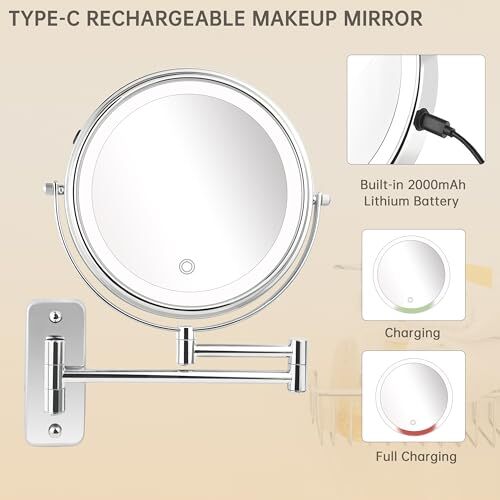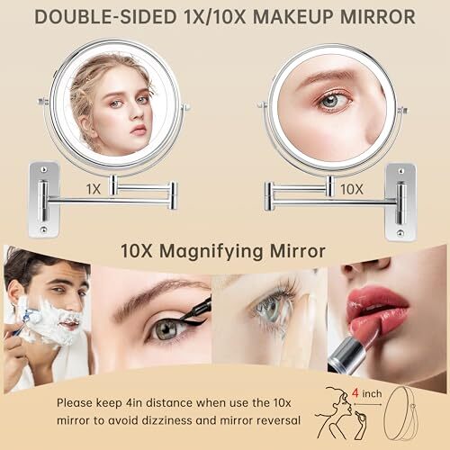 Menu 1. We require immediate payment. 2. We currently accept payment via eBay managed payments only. 3. Once payment is cleared, we will dispatch your shipment within 1-3 business days. Please refer to the "Shipping" tab for more information regarding shipping speed to your destination. 10X Wall Mounted Lighted Makeup Mirror, Rechargeable Double Sided 1X/10X Magnifying Mirror with 3 Color Lights, Touch Dimmable LED Vanity Mirror, Extended Arm 360° Rotating Mirror, 8 inch Product description 【Wall Mounted Makeup Mirror with Lights】The Upgraded Wall Mounted Makeup Mirror has a built-in 2000mAh rechargeable Li-ion battery, which can stay lit for more than 5 hours after fully charged, Type-C charging cable included (charger not included). No need to replace batteries and Keep long-lasting use! 【3-Lighting Modes & Touch Dimming】Built-in LED beads offer Cool Light, Warm Light, and Natural Light to meet your makeup needs for different occasions. Short touch to switch the light mode, and long press can adjust the brightness steplessly, creating a personalized lighting experience for you. Know that the battery in the mirror may not be fully charged before leaving the factory, for the best experience. It is recommended to fully charge before first use. 【Double Sided 1X/10X Magnifying Mirror】The wall mounted lighted makeup mirror has 1X and 10X magnification options. The 1X flat mirror for seeing the entire face during daily makeup, while the powerful 10X magnification back mirror is ideal for finely portraying eye makeup or retouching details. For best viewing experience, please keep your face at an appropriate distance within 4 inches from the 10x mirror to prevent blurry or upside-down images. 【360°Swivel Extendable Design】 The well-designed swivel bracket allows for 360-degree free rotation, and with the retractable arm, you can easily position the mirror to the viewing angle that best suits your needs. When not in use, it can be stowed away against the wall, saving space and keeping it tidy. What a perfect magnifying mirror wall mounted! 【Widely Used & Easy installation】The mirror can be installed in home bathroom, powder room, motel or dressing room, our lighted vanity mirror wall mounted also come with an easy installation kit. Referring to the instructions, You can complete the installation easily. 【Perfect Gift & Thoughtful Service】This bathroom vanity mirror with lights is a great gift for your lover, friends or family members for the important days of Christmas, Birthday, Thanksgiving, Valentine's Day. We provide 24/7 customer service for any questions you may have, contact us at any time for any questions about the product. PLEASE MESSAGE US IF YOU HAVE ANY OTHER QUESTIONS, AND MANY THANKS FOR READING ALL OF THIS. Copyright ©#. All Rights Reserved.