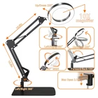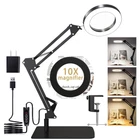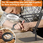 10X Magnifying Glass with Light and Stand, Real Glass 2-in-1 Desk Lamp & Clamp, Craft Light Lamp with 3 Color Modes, LED Lighted Magnifier with Light for Hobby Reading Crafts Repair Close Works Product Details Size: Large Base & Clamp Brand: ZTree MPN: ZTREE-US007 UPC: 710731208919 EAN: 0710731208919 Brand: ZTree Color: White Batteries Required?: No Lens Material: Glass Magnification Strength: 10 x Brand: ZTree Color: White Batteries Required?: No Lens Material: Glass Magnification Strength: 10 x Handle Material: Metal Manufacturer: ZTree UPC: 710731208919 Package Dimensions: 12.28 x 10.51 x 2.2 inches Item Weight: 0.634 ounces Item model number: ZTREE-US007 Date First Available: March 22, 2023 10x Magnification & Real Glass LensZTree LED magnifying glass is professionally designed with a 4.3" real glass lens, which can provides a clear magnifying view without distortion. Up to 10x magnification make reading/viewing small prints, sewing, repairing, carving, manicure, soldering ect easier. It is designed for people who need to work continuously at close range or who need visual aids. There is no dizziness even if use it for a long time. 3 Color Modes & Adjustable Lighting 10-Levels Magnifier with light has 72pcs high-brightness LED lamp beads with an up of 12.6W &1800 lumens. It's designed with 3 color modes (white, warm and cool) and stepless dimmable, you can easily adjust the brightness level between 10% and 100%, choose the most appropriate light source for your environment. 2-in-1 Desk Lamp & Clamp LightMagnifying glass with light and stand come with a weighted base and C-clip. You can use the base as a table lamp, or mount it on any flat surface (maximum thickness <2.1") as a clip light. The clamp can be easily mounted on a desktop, shelf, or workbench without any tools, which not only saves space, but also can be easily rotated to free up hands. Flexible Adjustment & Long Flexible ArmsThe LED lighted magnifying glass has two connected metal swivel arms with 3 knobs and 4 springs, the long arms can extend up to 20 inches. 360-degree rotatable light head, which can project light in any direction to meet your needs Eye Protection and Energy-SavingMagnifying lamp adopts a ring design with 72pcs built-in high-brightness LED provides you with an even, soft light and a large area of illumination. Without glare and flicker, the uniform light also prevents eyes fatigue and hurting. It's the perfect gift for people with low vision, elderly and those who need to constantly focus on close work.