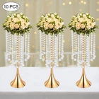 Specification Color: Gold Shape: Trumpet Treatment: Electroplating, Polishing, Hand-strung, Drilling, Welding Material: Iron, Acrylic Beads Style: Romantic, European Number of Pieces: 10 Assembly Required: Yes Installation Type: Centerpieces, Tabletop Number of acrylic Pendants: 24 Number of Octagonal Beads: 16 (Inner Ring), 12 (Outer Ring) Top Diameter: 20cm/7.9inch (Each) Base Diameter: 14.2cm/5.6inch (Each) Flower Vase Height: 55.6cm/21.9inch (Each) Package Size: 35*35*25cm/13.78*13.78*9.84inch Net Weight: 11kg/24.25lbs Gross Weight: 12.5kg/27.55lbs Package Included 10Pcs* Crystal Flower Vases All Accessories for Assembly 10pcs Crystal Flower Vases Golden Flower Stand Wedding Table Centerpieces Decor Description If you need some great flower vases to build a romantic wedding, a creative party, or a fantastic celebration, our product will be your best choice. Equipped with acrylic pendants with hand-strung beads, this flower vase can spice up the dull decor and create an eye-catching and dreamy atmosphere. And it uses high-quality iron and acrylic material with various processes such as electroplating, making it durable and reusable. Key Features Durable and Reusable: Each flower vase is made of high-quality iron with various exquisite processes such as electroplating, polishing, drilling, and welding, making it hard, durable, and reusable. Hand-strung Beads: The natural dangling of these hand-strung, elaborate beads adds so much beauty and elegance to the vase, showing your guests your elegant taste. Elegant Appearance: Its trumpet shape design, simple and smooth streamlines, and charming crystal beads present its uniqueness, novelty, creativity, and delicacy, adding an extra aestheticism to the scenes you need to decorate. Fascinating Backdrop: The acrylic crystal beads design can present a shimmering effect and spice up the dull decoration, especially under the sunshine or light, making it ideal for displaying as a fabulous backdrop for weddings, birthday parties, and other occasions. Easy to Assemble: For its simple structure and all accessories we provide, you can assemble this product easily and quickly. Easy to Clean: Due to its iron material with polishing and electroplating process, you can use a soft cloth to clean and dry, which is very simple. Easy to Store: Due to the segmented design and 24.25 lbs of total weight, these flower vases are easy to carry and store. Buy with Confidence: We aim to provide high-quality products and services. If you have any problems, please feel free to contact us. We will reply and solve the problem for you as soon as possible. Detail Top Flower Plate: The top flower plate is designed with two circles and three bars, together with drilling and welding processes, making it stable and unique. Stable Base: Its enlarged trumpet-shaped base has a diameter of 5.6 inches with good stability so that the entire vase firmly on the ground even if there are many flowers on it. Application These flower vases are suitable for wedding aisle decors, wedding receptions, event centerpieces, lower road leads, and daily home decoration. You can use them for housewarming, anniversaries, birthdays, weddings, engagements, etc. Specification Color: Gold Shape: Trumpet Treatment: Electroplating, Polishing, Hand-strung, Drilling, Welding Material: Iron, Acrylic Beads Style: Romantic, European Number of Pieces: 10 Assembly Required: Yes Installation Type: Centerpieces, Tabletop Number of acrylic Pendants: 24 Number of Octagonal Beads: 16 (Inner Ring), 12 (Outer Ring) Top Diameter: 20cm/7.9inch (Each) Base Diameter: 14.2cm/5.6inch (Each) Flower Vase Height: 55.6cm/21.9inch (Each) Package Size: 35*35*25cm/13.78*13.78*9.84inch Net Weight: 11kg/24.25lbs Gross Weight: 12.5kg/27.55lbs Package Included 10Pcs* Crystal Flower Vases All Accessories for Assembly Notes 1.Please note that flower balls are not included. 2.To extend its service life, do not use abrasives for cleanup. You can use a soft cloth to clean and dry. 3.Please allow the slight color difference caused by the shooting light and the 1-3cm error due to manual measurement. Please make sure you do not mind before you order. Payment Delivery details Terms of sales About us Contact us Payment We accept ebay payment 。 Fees such as import duties, taxes are not included in the item price or shipping costs. These charges are the buyer's responsibility. Delivery details Shipping: 2-9 working days to: USA Terms of sales We maintain high standards of excellence and strive for hundred percent customer satisfaction. Feedback is very important to us. We hope that you contact us immediately before you give neutral or negative feedback, so that we can address your concerns. It is impossible to address issues if we do not know about them! About us Your satis faction is our ultimate goal. We work hard to earn your trust and future business. Our certified technicians have tested each item before shipping. The unit comes with 1 year limited warranty on all manufacturing defects. a) If you receive a defective item, you may return it or ask for a discount. Please contact us within 14 days after you receive the package. b) What you returned must be intact and in its original packaging as re? u. Customer is responsible for shipping costs of the returned item. c) We will cover the cost of shipping back t with the shipping rate indicated in the registration page. We will send you a new unit or refund the full payment you paid. Thank you. Contact us Business Hour Business Hour: Monday To Friday: 8:30 AM to 5:00 PM (Beijing China time) Due to time zones, our reply to your questions may not be immediately. But within above working time, we will reply your email within 24 hours. If it's non-workdays, please kindly be patient and wait till Monday. Please contact us with ebay message. Please feel free to contact us if you have any questions. Monday To Friday: 8:30 AM to 5:00 PM (Beijing China time) Due to time zones, our reply to your questions