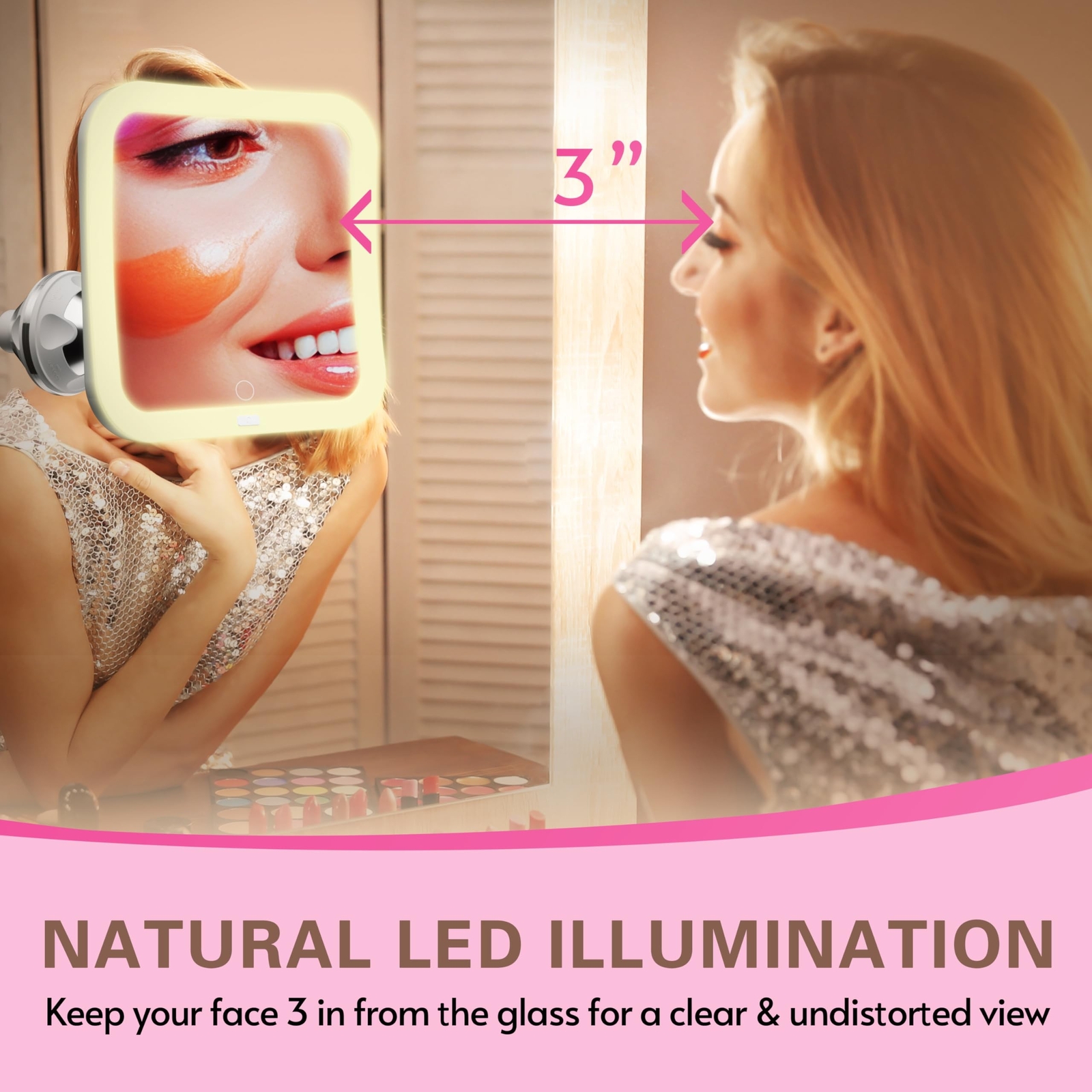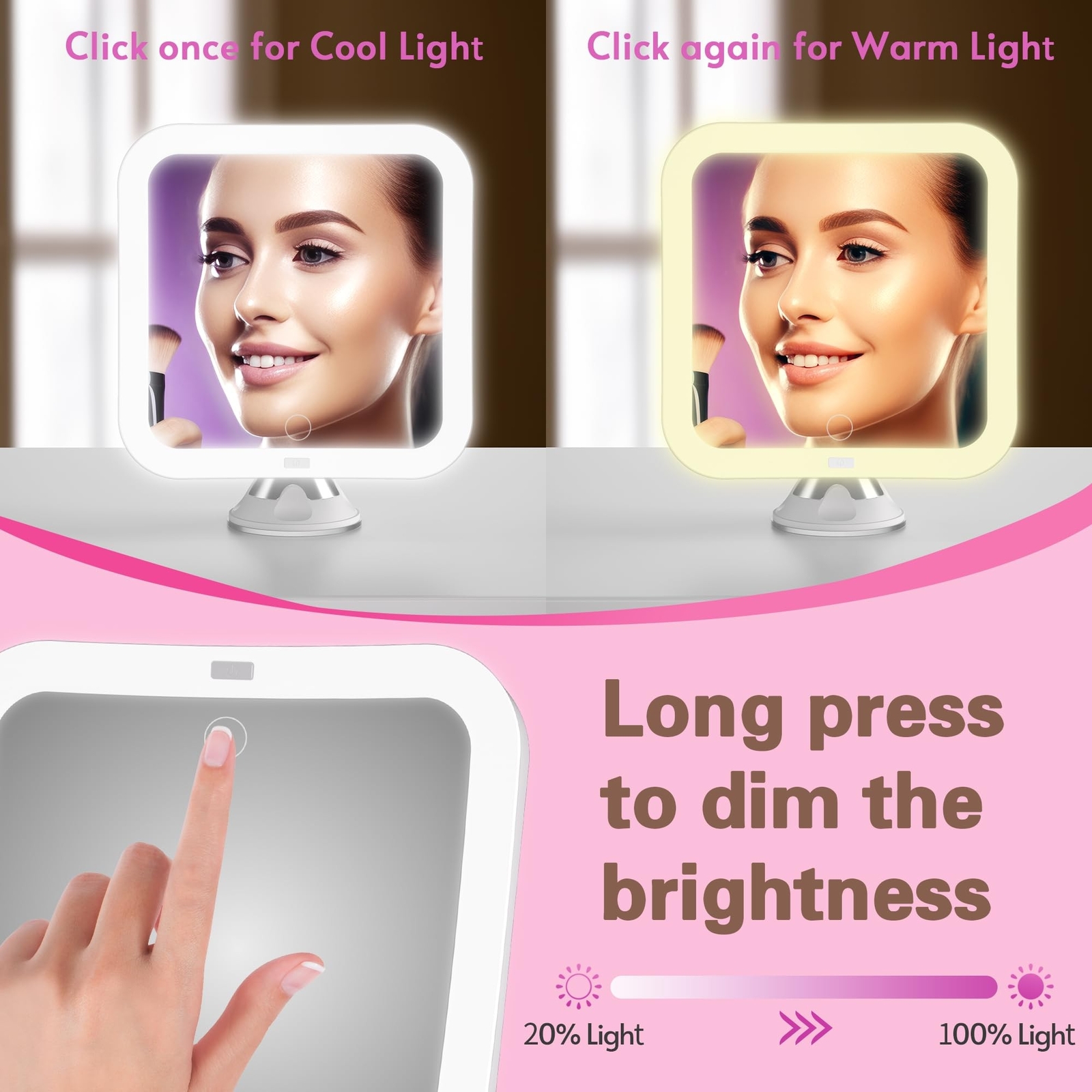 Upgraded 10x Magnifying Lighted Makeup Mirror with Natural White LED Lights, 360°Swivel Portable Cordless Makeup Mirrors with Locking Suction Base for Home Bathroom Shower and Travel (Large) Product Details Size: 9"L x 7.3"W Brand: MTORED MPN: S-01 UPC: Does not apply EAN: Does not apply Brand: MTORED Room Type: Bathroom, Bedroom, Living Room, Home Office, Dining Room Shape: Square Product Dimensions: 9"L x 7.3"W Frame Material: Plastic Brand: MTORED Room Type: Bathroom, Bedroom, Living Room, Home Office, Dining Room Shape: Square Product Dimensions: 9"L x 7.3"W Frame Material: Plastic Style: Modern Mounting Type: Wall Mount Finish Type: Polished Surface Recommendation: Plastic Special Feature: 360 Degree, Cordless, Compact, Adjustable, Magnifying Color: White Theme: Travel, Home Use, Beauty, Love, Makeup Specific Uses For Product: Makeup, Personal Grooming, Travel Number of Pieces: 1 Number of Items: 1 Material: Glass, Plastic Frame Type: Framed, Square Assembly Required: No Frame Color: White Magnification Maximum: 10 x Manufacturer: MTORED DIRECT Size: 9"L x 7.3"W Item Weight: 5.3 ounces Item model number: S-01 Date First Available: September 7, 2023 10X MAGNIFICATION MIRROR The MTORED Mirror has been designed to provide powerful 10X magnification and non-distorted images that making it easier for users put in contact lenses, apply false eyelashes, view clogged pores and blemishes. Adjustable LED LIGHTS - The light source around the LED mirror eliminates shadows during your skincare routine. The mirror is equipped with 16 of advanced led beads, lighting up the gloomiest areas for your makeup at night .Also equipped with warm and cold light and brightness adjustment. 360 ROTATION & POWERFUL SUCTION CUP - The flexible mirror can rotate 360 allowing you to obtain the best viewing angle. Strong suction cup locks the mirror firmly onto any smooth, clean, flat surface. The mirror attaches to tables, walls, windows, and even larger mirrors such as your bathroom mirror. COMPACT & PORTABEL TRAVEL READY - Elegant in appearance, the cosmetic makeup mirror has a beautiful, glossy white shell, a chrome tone, and a stylish modern design.It is very suitable for travel since it is cordless, lightweight, and also suitable for handheld use. PRODUCT DIMENSIONS - See more with our large, distortion-free, 10x magnification mirror.With a 7.3 inch by 7.3 inch diameter, the larger diameter is ideal for seeing your whole face while applying makeup.