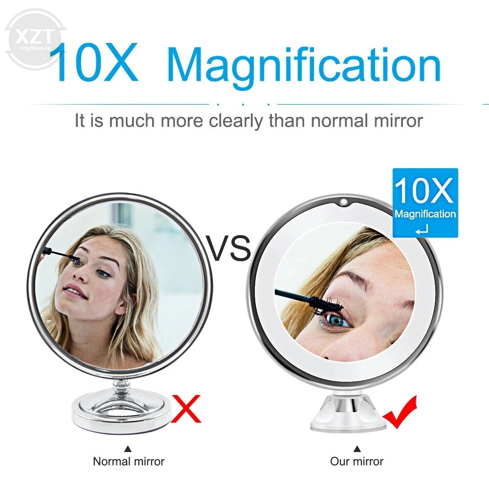 30 Days Return Fast Shipping Trusted Seller Flexible Makeup Mirror 10x Magnifying Mirrors 14 Led Lighted Touch Screen Vanity Mirror Portable Dressing Table Cosmetic Mirrors Flexible Makeup Mirror 10x Magnifying Mirrors 14 Led Lighted Touch Screen Vanity Mirror Portable Dressing Table Cosmetic Mirrors Description: 1. Bright Natural Daylight - Efficient LED lights provide bright natural light. You can adjust the brightness ( 3 levels ) of the LEDs according to your makeup requirements 2.Double-Sides Design - The 1x mirror is used for regular makeup, and the 10x magnified mirror allows you to easily achieve precise facial makeup. The double-sided 360-degree free rotation design makes it easy to find the perfect reflection 3. A strong locking suction base - you can set it up at a larger mirror or any glossy surface 4.Compact and Lightweight - This is a portable double-sided travel makeup mirror that is easy to carry around when you travel or in the office, always show the perfect looks with this lighted mirror at any time Specifications: Diameter: 17.5cm Height: 21cm Colour: White Power supply: 3*AAA (not included) Material: ABS+PP+stainless steel 201+ glass Number of LEDs: 14 Include: 1xMakeup mirror SHIPPING POLICY: Free Worldwide Shipping! RETURN POLICY: 30 Days returns! PAYMENTS: Safe and secure payment with PayPal! FEEDBACK: Customer satisfaction is very important to us. If you have any problem with your order, please contact us. We are here to assist you and resolve any issues that arise, so please give us a chance to do so prior to potentially posting any negative feedback. We are sure that we can provide a solution that makes you satisfied. CONTACT US: If you have any queries, please contact us via ebay . We usually respond within 24 hours on weekdays. Thank you for shopping with us!