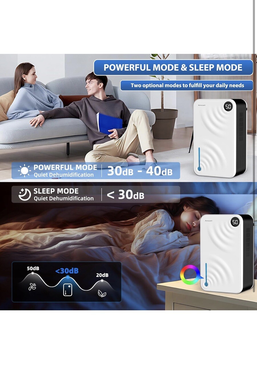 Keep your home or bedroom free from excess moisture with this powerful dehumidifier from Amzart. With a tank capacity of 118oz, this console-style dehumidifier is perfect for small to medium-sized rooms. It features a digital display and automatic shut-off for convenience, and the removable water tank makes it easy to dispose of excess water. Ideal for use in recreational vehicles (RVs) and whole rooms, this dehumidifier is a must-have for anyone looking to maintain the comfort of their living space. Its sleek white design fits seamlessly into any room, and its lightweight of only 5lbs makes it easy to move around. Don't let excess moisture ruin your home - invest in this high-quality dehumidifier today.