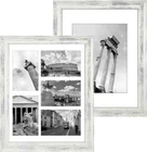 11x14 Picture Frames Composite Rustic Distressed White Wood Pattern Wall Mounting Photo Frame pack of 2 Each Frame with 2 Mats,Display 8x10 or Five 4x6 Photos with Mat & 11x14 Picture Without Mat Accessory Kit Included. White Wooden Pattern Rustic Distressed Style Picture frames with natural color backing EACH picture frame 11x14 come with 2 different mats(4 mats total in the parcel) Actually one frame can fit up with 3 different sizes photos or arts: 8x10 picture or Five 4x6 picture with mat, 11x14 picture without mat. Wood Plastic Composite frames with plexiglass front that give clear views of your pictures and preserve your photographs, cards and memories.To make it safer to ship our products, we have replaced ordinary glass with plexiglass. 11x14 Frame Comes with easy opening tabs at the back for easy access for loading photos. The frame can only hang on the wall by wall hanger at back, We give away accessory kits that include gloves, a tape measure, some nails, and a spirit level. Any questions are welcome Thanks