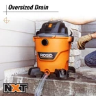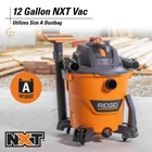 12 Gallon 5.0 Peak HP NXT Shop Vac Wet Dry Vacuum with General Debris Filter, Locking Hose and Accessory Attachments Great value, high-performance wet dry vacuum for tough messes Wet nozzle and built-in drain, ideal cleanup solution for liquids Shop Vac features the RIDGID Lifetime Warranty The RIDGID 12 Gallon 5.0 Peak Horsepower NXT Wet Dry Vacuum was built for pros ready to take their projects to the next level. This vac comes with a 7 ft. hose, general debris filter, NXT Max floor tool with wet shoe, NXT Max car nozzle, and 2 extension wands. With more power, enhanced durability and a design engineered for the pro user, this high-performance vacuum is part of the most powerful line of wet dry vacs RIDGID has ever made. Its redesigned scroll technology gives the shop vac an increase in power, suction, and lift. The 12 Gal. NXT vac 2-1/2 in. locking accessories that lock onto a wand or hose for uninterrupted cleaning and the 2-1/2 in. diameter size resists clogs. Hose storage keeps the hose neatly onboard and accessory storage space at the top of each caster gives quick access to attachments. Two locking extension wands extend reach while the bare floor tool cleans larger areas. Use the floor tool with wet shoe to clean liquid spills and the car nozzle for detailed cleaning. The blower port adds versatility and allows you to use the hose to blow leaves, grass clippings and more. This vac features our patented Qwik Lock Filter that makes installing or removing your wet dry vac filter quick, easy, and secure. Pro Tip: Add a RIDGID shop vac filter (VF4000, VF5000, VF6000, VF7000, VF8000 sold separately) to a RIDGID shop vac to maintain the power of the vac and extend vacuum life. Dust bags are also available for quick cleanups and disposal. Air Volume (CFM): 144 Amperage (amps): 9 Blower Port: Included Color Family: Oranges/Peaches Cord Length (ft.): 15 Cordless/Corded: Corded Debris Type: Dust Mites,General Debris,Pollens,Sawdust Filter Type: Cartridge Included Accessories: No additional accessories included Power Source: Electric Product Weight (lb.): 22 lb Recommended Surfaces: Auto Interior,Bare Floor,Carpet,Concrete,Laminate,Leather,Stairs,Tile,Upholstery,Vinyl,Wood Returnable: 90-Day Tools Product Type: Vacuum Vacuum Maximum Capacity (Gallons): 12 gal Voltage (V): 120 Wet/Dry Attachment & Accessory Type: Vacuum Hose Diameter (in): 2.5 in Hose Length (ft.): 7 ft Peak Horsepower (php): 5 Product Depth (in.): 18.7 in Product Height (in.): 26.6 in Product Width (in.): 18.6 in