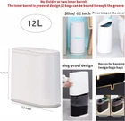 For quality and damage problems, you can click the order to contact the seller to,12Liter/3.17 GallonTrash Can with Lid: This is a trash can with press top lid that tucks well into small spaces and hides odors and litter. Easy to Clean: The wastebasket is made of plastic, easy to wipe clean with a damp cloth, and the plastic inner bucket can be easily removed for easy waste disposal. Easy to Use:Just press the button on the lid to open and close.It's durable and sturdy.Fits well in kitchen,bathrooms, offices or wherever space is limited. Dog-Proof Trash Can:The trash can is impossible for your puppy to open, and the oval-shaped small trash can is perfect for placing in small spaces such as kitchen or bathroom, which can help you save room space. 100% Satisfaction Guarantee: If for any reason you're not completely happy with your purchase- if it breaks, if it's damaged in shipping, or even if you change your mind - simply let us know and we will either replace it or refund your money, your choice! Product Description 12L Slim Bathroom Trash Can 12L Slim Bathroom Trash Can Cq acrylic 12L Slim Bathroom Trash Can Plastic 3.17 Gallon Small Narrow Gallon Garbage Can with Press Top Lid,Dog Proof Wastebasket Trash Can for Bedroom,Kitchen,Office,Living Room,White Easy to Clean: The wastebasket is made of plastic, easy to wipe clean with a damp cloth, and the plastic inner bucket can be easily removed for easy waste disposal. Space saving: Our trash cans are slim and rectangular, which is a space-saving design. The small and slim design saves you space and can be easily installed in narrow openings and small spaces. You can put it in any limited places such as bedroom, living room, kitchen and bathroom. 12Liter/3.17 GallonTrash Can with Lid: This is a trash can with press top lid that tucks well into small spaces and hides odors and litter. Dimension:13"L x 6.2"W x 12.7"H Easy to Use:Just press the button on the lid to open and close.It's durable and sturdy.Fits well in kitchen,bathrooms, offices or wherever space is limited. Dog-Proof Trash Can:The trash can is impossible for your puppy to crack, and the oval-shaped small trash can is perfect for placing in small spaces such as kitchen or bathroom, which can help you save room space.