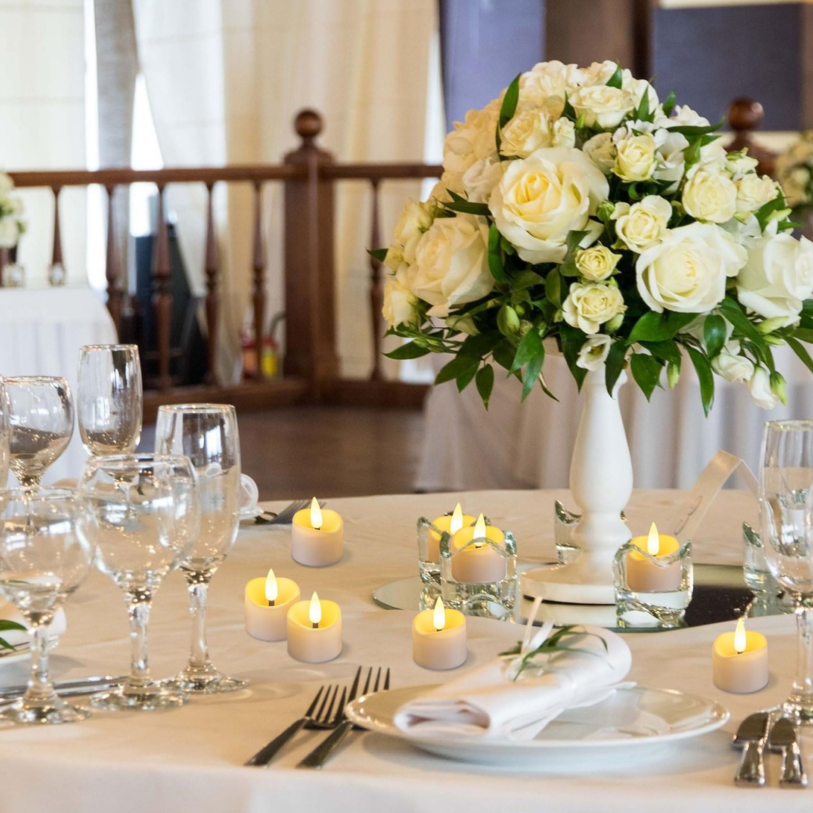 12 Pack LED Timer Tea Lights Battery Operated, Flameless Flickering Electric Timer Votive Candles, Outdoor LED Flicker Fake Tealight Candle Bulk for Christmas Halloween Pumpkin Light Decorations Product Details Finish Type: Matte Base Material: Plastic Product Dimensions: 1.4"D x 1.4"W x 1.8"H Item Weight: 180 Grams Lamp Type: LED tea lights Product Dimensions : 1.38 x 1.38 x 1.81 inches; 6.35 ounces Item model number : CDL19A12T Batteries : 1 C batteries required. (included) Date First Available : July 17, 2023 Manufacturer : Yakpo Country of Origin : China Customer Reviews: 4.2 4.2 out of 5 stars 77 ratings Finish Type: Matte Base Material: Plastic Product Dimensions: 1.4"D x 1.4"W x 1.8"H Item Weight: 180 Grams Lamp Type: LED tea lights Shade Color: Warm White Shade Material: Plastic Switch Type: Slide Switch Style: Modern Brand: Yakpo Color: Timer Tea Lights 12 PCS Special Feature: Built-in timer, 6 hours ON and 18 hours OFF, Realistic 3D flame with black wick Light Source Type: LED Material: Plastic Room Type: Living Room, Bedroom, Dining Room, Church, Bar, Hotel, etc. Recommended Uses For Product: Decoration Power Source: Battery Powered Shape: Round Controller Type: 6-hour timer Number of Light Sources: 12 Connectivity Technology: USB Included Components: Battery Is Waterproof: False Mounting Type: Tabletop Cartoon Character: LED tea light with timer Number of Items: 12 Lighting Method: Uplight Control Method: Touch Indoor/Outdoor Usage: Indoor Specific Uses For Product: Halloween, Christmas, Thanksgiving, Wedding party, Valentine's Day Decor Water Resistance Level: Not Water Resistant Installation Type: Freestanding Number of Pieces: 12 Voltage: 3 Volts (DC) Base Diameter: 1.5 Hundredths-Inches Is Cordless?: Yes Assembly Required: No Size: Small Manufacturer: Yakpo Part Number: 12 pack LED timer tea lights Item Weight: 6.3 ounces Country of Origin: China Item model number: CDL19A12T Batteries: 1 C batteries required. (included) Finish types: Matte Special Features: Built-in timer, 6 hours ON and 18 hours OFF, Realistic 3D flame with black wick Batteries Included?: Yes Batteries Required?: Yes Color Temperature: 2150 Kelvin Date First Available: July 17, 2023 Elegant flameless LED timer tea lightsBrighten your space with these flickering LED tealights bulk. These battery operated votive candles feature a realistic 3D black wick flicker flame and melted wax edge. Ideal for family events and holiday decor such as Christmas, Halloween, or engagement dinners, these electric tea lights effortlessly create a warm and inviting atmosphere. Convenient timer featureThe flameless battery powered tealight candle comes with an automatic timer. Once you turn on the tea lights, they will light ON for 6 hours and then automatically OFF for 18 hours, repeating this 24-hour cycle. Enjoy their warm white flickering glow at the same time every day while saving energy. Versatile for various occasionThe battery tea lights with timer are suitable for indoor events like wedding centerpieces, baby showers, holiday celebration tables, Thanksgiving, Valentine's Day proposals, anniversary celebrations, and birthday parties. Create a captivating flickering ambiance in your garden, patio, or balcony pumpkin lights with these plastic flameless LED votive tea candles. Safe and cute mini tea lightsMeasuring 1.4 inches in diameter and 1.8 inches in height (D 3.5cm x H 4.6cm), these small flickering LED tealights easily fit into most tea light holders. They are also a good choice for outdoor Halloween pumpkin lantern decorations. With no smoke, flame, or scent, these fireless electronic candles are safe for children and pets, eliminating the risk of fire hazards and wax spills. Durable and hassle-free fake LED candlesEach prelit flameless flickering timer tea light is powered by a long-lasting CR2032 button cell battery, offering over 150 hours of battery life. Replacement is quick and effortless. Enjoy the beauty and tranquility of candlelight, free from unnecessary worries or hassles.