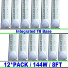 FAST DELIVERY - Ship from New Jersey or Los Angeles Warehouse via FedEx , 3-7 Days Delivered Your Door . SCIENTIFIC DESIGN - 8Ft LED Shop Lights Fixture is Made of 6500K Cold White SMD2835 LED Chip ,Plastic Clear Cover , Aluminum Bracket Housing ,and AC85-277V Constant Current Driver . It can work in -68F to 120F Temperature Conditions EASY INSTALLATION - The Integrated Tube Fixture Can be Install on Wall or Ceiling ,Easily Replace Traditional Fluorescent Tube Bulb . Plug and Play , Free Accessories (Power Cords, Connector , Extension Cords , Clip and Screw ) Come with Tube Lights Together WIDE APPLICATION - Linkable 8Ft Bulbs Widely Used in Garage Ceiling , Barbershop , Schools, Hospitals Basement , Factory Warehouses , Supermarkets Cooler Door , Offices, Shops,Hotels, etc 12 Pack Led Shop Light 8 Foot 144W 8Ft LED Tube Light T8 Integrate 4 Row Fixture FAST DELIVERY - Ship from New Jersey or Los Angeles Warehouse via FedEx , 3-7 Days Delivered Your Door . SCIENTIFIC DESIGN - 8Ft LED Shop Lights Fixture is Made of 6500K Cold White SMD2835 LED Chip ,Plastic Clear Cover , Aluminum Bracket Housing ,and AC85-277V Constant Current Driver . It can work in -68F to 120F Temperature Conditions EASY INSTALLATION - The Integrated Tube Fixture Can be Install on Wall or Ceiling ,Easily Replace Traditional Fluorescent Tube Bulb . Plug and Play , Free Accessories (Power Cords, Connector , Extension Cords , Clip and Screw ) Come with Tube Lights Together WIDE APPLICATION - Linkable 8Ft Bulbs Widely Used in Garage Ceiling , Barbershop , Schools, Hospitals Basement , Factory Warehouses , Supermarkets Cooler Door , Offices, Shops,Hotels, etc
