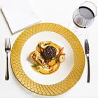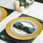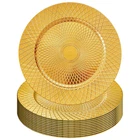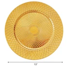 Unique Decoration: Package includes set of 12 pcs beautiful gold diamond pattern plastic charger plates. Each charger plate external diameter: 13". Inner diameter: 9". Perfect size to place small to regular-sized plates and bowls High Quality: These charger plates are made of premium quality plastic, classic round shape with beautiful diamond pattern. Sturdy and durable, lightweight for easier carry and transport Widen Border Design: Each decor charger plates come with a thick border, when place under salad plates, soup bowls and dinner plates, they can well prevent from spilling, at the same time adding a sophisticated feel Great for Any Occasions: The elegant diamond pattern on the surface make these plastic charger plates a charming accent for any table settings, perfect for enhancing table settings at formal occasions like weddings, banquets, catered event, restaurant, hotel etc Easy to Maintenance: These dinner table decor charger plates are easy to care, simply gentle rinse wash after use it. They are no dishwasher safe and microwavable. Important Notes: For decorative purposes only, please do not contact with food directly Copyright Number: Charger Plate-VA0002295298