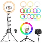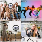 【 39 Color Modes】Dimmable 12'' ring light featuring 3 lighting modes(warm light/natural light/cool light) Besides, 23 RGB Colors modes(10 monochrome static + 13 dynamic modes) than other brands. Each mode has multi brightness levels, suitable for makeup, photography, Instagram, YouTube, Tiktok short videos, etc. 【Dimmable 12" LED Ring Light】12" ring light for iPhone has built-in 160 bright LED lights, and the LED ring light with stand has 3 color lighting modes (white, yellow, warm yellow), the color temperature is 3000K-6500K, each color lighting mode has 10 brightness adjustments for your choices, meet all your needs. Please use a 5V/2A adapter for this product to avoid problems with the brightness of the ring light or the ring light not working. 【Foldable Floor Stand & Desktop Tripod】This ring light with foldable floor stand, quite portable, folded-15.7" in length, fully stretched-60", finally connect the light ring - about 72 inches. With mini desktop tripod, more combination options to bring a more perfect user experience. Best ring light kit choices for anyone. 【2 Retractable Phone Holder】ring light comes with 2 types of phoner holder, compatible for most major smartphones with or without a case on the market, a pole mount phone holder which can extends up to 3.35" wide, and a 360° ball head, allowing you to take photos from any angle with a simple adjustment knob. Perfect for iphone streaming, makeup, photo selfie, tik tok youtube video recording, zoom meeting, conferencing, photography, etc. 【USB Powered &Wireless Remote】No battery needed, works with most devices that support USB port, like a laptop, PC, power bank, USB charger, AC adapter, and etc. Switch Lighting modes and adjust brightness levels, allowing you to find your preferred options in seconds. Set your hands free by wireless remote control. Android and iOS are compatible. 【After-sale Service】We will provide you with a high quality after-sales, 12 months After-sale service. Please contact us anytime if any question.