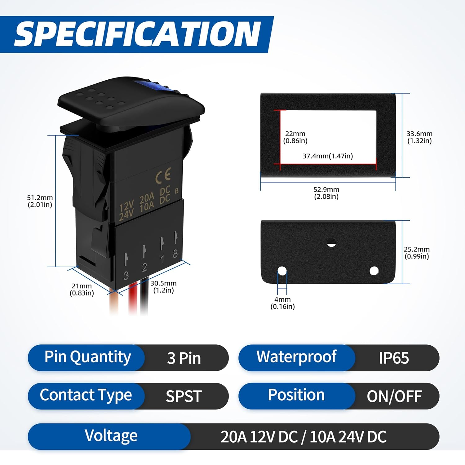 Store New Arrivals Add to Favorite View Feedback Contact 12 Volt Rocker Switch 3 Pin Spst On/Off 20A 12V 10A 24V Blue Led Rocker Switch Panel Mount for Marine Boat Car Automotive Description Item model number DR-A11313ABL+BS8-3+DS-S1-L Item dimensions L x W x H 3 x 2 x 0.5 inches Current Rating 20 Amps Operating Voltage 12 Volts Mounting Type Panel Mount Product Dimensions 3 x 2 x 0.5 inches; 2.4 ounces Country of Origin China Connector Type Plug In Style Rocker Switch Terminal Screw Operation Mode ON-OFF Actuator Type Rocker Contact Type Normally Open Switch Type Rocker Material Alloy Steel Heavy Duty: Heavy duty 3 pin rocker switch rated at 20A 12V DC, 10A 24V DC is excellent to control your devices ON/OFF Switch: 12V rocker switch is easy to turn on or off. Improve design and increase durability. Rated switching frequency is 10000 times, solid and durable Mounting Bracket: Rocker switch mounting bracket can be installed in any suitable position for convenient switch operation What You Get: 1 x 3 pin rocker switch, 1 x rocker switch plug connect socket, 1 x mounting bracket and 3 x screws Wide Application: Rocker switch mount suitable for most cars, boats, golf carts, off-road vehicles, home appliances, etc Product Description SPECIFICATIONS Voltage: 20A 12V; 10A 24V Type: Spst 3 Pin On Off Waterproof : IP65 Operating Temperature: -25℃ - +85℃ Electrical Life: ≥10,000 Cycles Protection: Waterproof; Weatherproof; Dustproof RVBOATPAT is a professional factory. We are dedicated to producing various high performance industrial products. All kinds of products are widely used in automobiles, ships, trucks, circuits, etc. to make electric energy safer, more convenient and more efficient. Rocker switch bracket for panel mount The switch is made of high-quality industrial materials for longer life and durability The switch can be used indoors and outdoors. When used outdoors, the protective cover can be waterproof, dustproof and anti-corrosion. The bracket can be installed in any suitable position for convenient switch operation. Package Includes: 1 x 3 pin rocker switch 1 x rocker switch plug connect socket with wires 1 x mounting bracket 3 x screw Blue LED Lighted Switch Connector Mounting Bracket ABOUT US We offer the best prices around on high quality products. Our E-store includes media such as books, movies, music and games while offering electronics, toys, sporting apparel, clothing, tools, general home, garden items and more. SHIPPING We are always working hard to ensure your package arrives as soon as possible. Please understand that some factors like weather, high postal traffic, and the performance of shipping companies are outside of our control. We offer free shipping to the lower 48 states and ship within 2 business days of payment, usually sooner. We do not accept P.O. Boxes. Please provide a physical address. For shipping outside of the continental USA, we only use eBay's Global Shipping Program.The item is shipped to KY and then sent to the rest of the world. International customers are responsible for all duties and taxes. Continue to check out in order to calculate costs for shipping the item to your country. Messages regarding eBay's Global Shipping Program MUST be directed at eBay EXCLUSIVELY. RETURNS We offer a 30-Day Return Policy on items which you are not completely satisfied with. You have the option for a full-refund or an exchange of the item. No returns are available on items shipped outside of the USA. PAYMENT We accept PayPal. CONTACT US This page content is yet to come Please ad us to your favorite seller and visit again later Thank You CUSTOMER SATISFACTION We try our very best to make sure every customer is completely satisfied. If there's a problem, message us! We're happy to help. WE ACCEPT Copyright © 2021 AutoDS. | All Rights Reserved