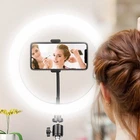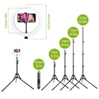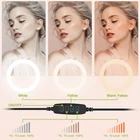 eBay 10" LED Ring Light w/Tripod Stand Kit Product Detail Image Gallery Product Description Features: *DIMMABLE 10"LED RING: Adopting 120pcs premium LED chips to provide 2300lumens brightness. It includes 3 light modes:Warm Yellow,Yellow and White of the color temperature adjustment from 3000K to 6500K. The warm light hides skin blemishes to offer a flawless and charming look. Cool light brighten your skin tones to make your face look more angular. Besides,the brightness of the light can be adjusted from 1% to 100%. *FLEXIBLE LIGHT ILLUMINATION ANGLE: 360° Horizontal rotatable and 180°vertically adjustable feature allows you to choose the right light illumination angle conveniently. *STRETCHABLE TRIPOD STAND: Coming with a sturdy metal made tripod stand which can be extended from 34.25inches to 82.68inches to meet your different needs. And it can be folded easily after use. *EASY INSTALLATION AND PORTABLE: Simple structure to realize an easily installation and quick release. With this adjustable design,it is easy to storage the ring light and the foldable tripod stand conveniently. *MULTI-PURPOSE: Coming with an adjustable smartphone holder(width range:2.16-3.74in) which supports the most different size smartphones in the market,including for iPhone XS / XS Max / XR / X / 8 / 7 plus / 6,Samsung S8 / Note8,etc.. Can be used for makeup,YouTube video,self-portrait,video shooting,beauty salon and live streaming. Note:Press the “+” or “-” button to adjust the light brightness. Specifications: Brand: iMounTEK Product Type: LED Ring Light Material: ABS and Aluminum Alloy LED Quantity: 120Pcs Lumens: 2300lm Color Temperature: 3000K-6500K Brightness Adjustment Range: 1%-100% Power Output: 12W Power Supply: USB 5V (1-4A) Item Color: Black Light Modes: Warm yellow/ Yellow/ Cool Smartphone Holder Range: 2.16-3.74in Item Size: Ring Light: 26cm/10.23in (OD), 19.5cm/7.68in (ID) Light Stand Length: 87cm-210cm/34.25in-82.68in Cable Length: Approx. 195cm/76.78in Item Weight: 1146g/2.53lbs Ring Light Packaging Size: 26.5x26.5x4cm/10.43x10.43x1.58inch Stand Packaging Size: 51x8.5x8.5cm/20.07x3.35x3.35inch Packaging Weight: 1298.5g/2.87lbs Package Contents: 1 x LED Ring Light 1 x Light Tripod Stand 1 x Smartphone Holder 1 x Connection Accessories Set 1 x User Manual Terms & Conditions Thank you for your business !