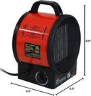 WARMS UP COOL SPACES: This portable garage space heater for a room measures 6.5" in diameter x 5.5" D x 8.5" H. The base of heater is 5.5" D and 5" W and weighs 3.2 lbs. It has a 6-foot long power cord. It has 1,500 watts, 15 amps, and 120 volts. It produces 5,120 BTUs per hour and can heat 150 square feet. POWERFUL LITTLE HEATER: Constructed with a PTC ceramic heating element to provide constant heat, this 120 volt garage heater features 2 power settings: low heat (750W) and high heat (1500W). The power indicator light shows when heater is turned on. The heater surface stays cool after prolonged use. SUITABLE FOR UTILITY USE: This ceramic space heater provides quick warmth with minimal noise, making it a practical option for keeping your garage or project area comfortable during winter days. Designed for indoor use only, it’s also great for warming basements, greenhouses, bedrooms, or home office spaces. DEPENDABLE SAFETY FEATURES: The small garage heater is equipped with an internal heat-limiting thermostat and overheat protection circuit. The system will automatically shut the heater off when a potential overheat temperature is reached or if the device is accidentally tipped over. It features a 2-prong polarized plug. WORRY-FREE PURCHASING: Sunnydaze Decor backs its products with a 1-year manufacturer's warranty. Product Description The video showcases the product in use. The video guides you through product setup. The video compares multiple products. The video shows the product being unpacked. Compare other Fire Pits from Sunnydaze Add to Cart Add to Cart Add to Cart Add to Cart Customer Reviews 4.2 out of 5 stars 155 4.3 out of 5 stars 418 4.3 out of 5 stars 418 4.3 out of 5 stars 418 4.3 out of 5 stars 418 Price $39.97 $ 39 . 97 $129.00 $ 129 . 00 $119.97 $ 119 . 97 $129.97 $ 129 . 97 — Dimensions 6.5" W x 5.5" D x 8.5" H 7.75" W x 19" D x 13" H 8.25" W x 17.25" D x 14" H 9" W x 20.5" D x 15.5" H 9" W x 20.5" D x 15" H Heating Output 5,120 BTU 40,000 BTU 60,000 BTU 85,000 BTU 125,000 BTU Heating Area 150 square feet 1,000 square feet 1,500 square feet 2,200 square feet 3,200 square feet Includes Space heater Heater, regulator, and hose Heater, regulator, and hose Heater, regulator, and hose Heater, regulator, and hose Portable ✔ ✔ ✔ ✔ ✔ Auto Shut-Off ✔ ✔ ✔ ✔ ✔ Adjustable Heat ✔ ✘ ✔ ✔ ✔ Indoor or Outdoor Indoor Outdoor Outdoor Outdoor Outdoor