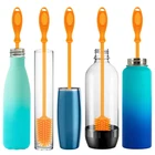 HOW TO USE: Be aware that silicone is non-absorbent, so it CANNOT hold soap, lather up or get sudsy like a sponge. For optimum cleaning results when using our bottle brush, first add warm, soapy water to your container, and then scrub away. The minimum diameter neck the brush will squeeze into is 1 1/8” wide, so it won't fit in beer, wine, swing-top or kombucha bottles. DEEP CLEANING POWER: With its 12.5” long, non-flexible steel shaft and rugged silicone bristle head, our water bottle brush gets deep down into tall, narrow containers such as insulated water bottles, flasks, thermoses, baby bottles, vases and skinny glassware. BETTER HYGIENE FOR YOU: Our silicone water bottle cleaner repels unpleasant odors and stains - unlike sponge and nylon brushes that fall apart, and get smelly after a few uses. This bottle scrubber prevents nasty grime build-up which is more hygienic and healthier for your family NO MORE SCRATCHES: The easy-clean, non-scratching silicone bristles of our 12.5” long bottle cleaning brush are tough on gunk, yet gentle enough to leave your favorite vase, glass water bottle, pitcher, blender and delicate glassware clean and scratch-free SAY GOODBYE TO GRUNGY CONTAINERS: It’s great as a sports bottle cleaner brush, for swishing slimy dregs from your flask, scrub soup from your thermos, or blitz residue in your baby bottle. Our 12.5” long bottle brush is perfect as a travel bottle brush too! LONG LASTING & DURABLE: The sturdy bristles of the rugged bottle brushes for cleaning will keep their shape, and won’t break off or fall apart. Our long bottle brush fits in 1 1/8” width bottle necks or larger, and heat-resistant up to 400°F.