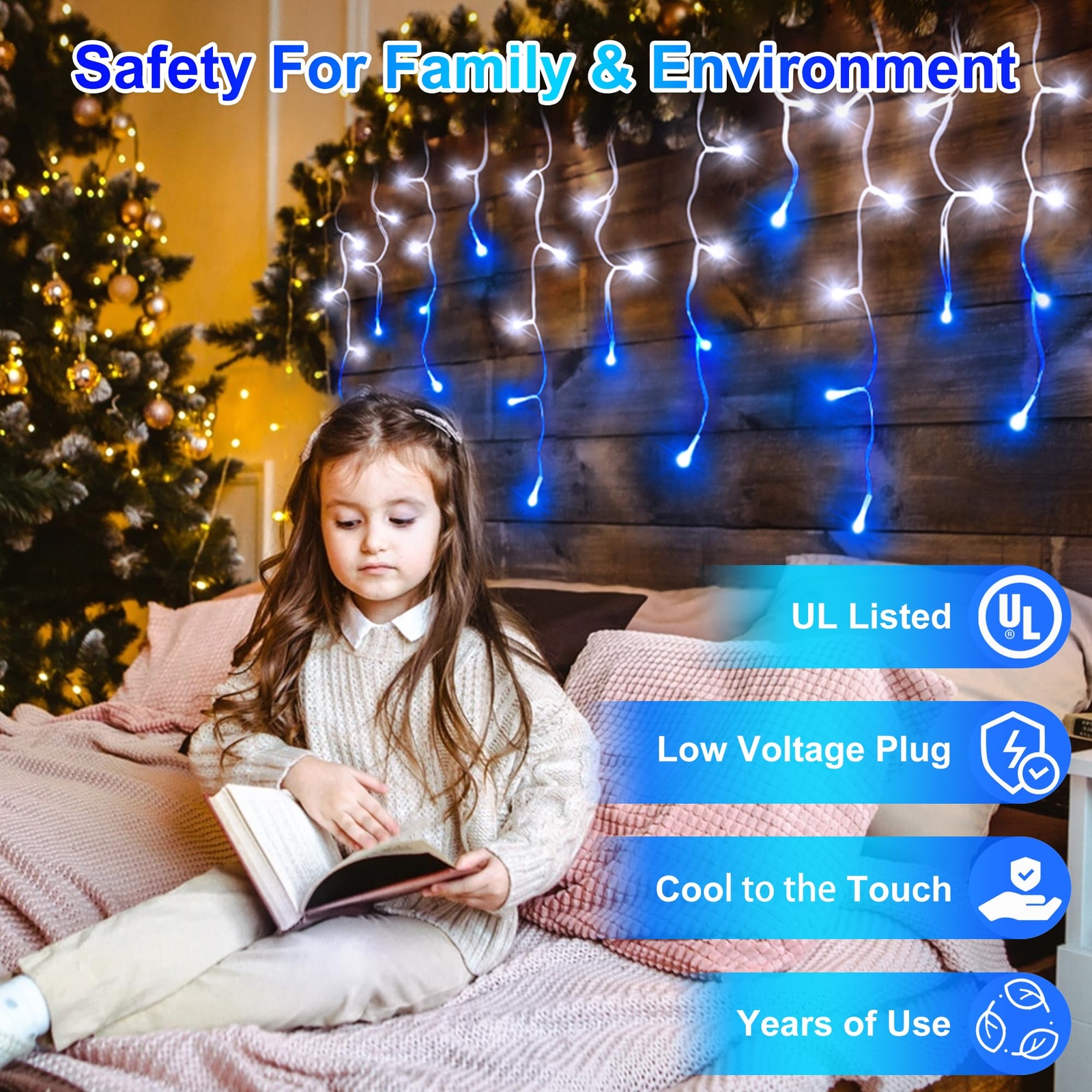1296LED Christmas Lights with 288 Drops, 131ft 8 Modes Christmas String Lights Outdoor, Waterproof Christmas Decorations Fairy Lights with Timer Memory for Party Patio Window Fence Blue & CoolWhite Bring Christmas Magic to Every Corner: Ready to create a warm and festive atmosphere? Our 131ft christmas iciclelights with 1296 LEDs total 288 drops are ideal for decorating porches, doorways, balconies, and even windows. Whether you’re adding a touch of Christmas cheer to your apartment or brightening up your backyard patio, these lights will instantly turn your space into a winter wonderland Light Up Your Holidays in Style: Bring the holiday spirit to life with 8 magical lighting modes! From gentle glowing to twinkling like stars, these lights let you switch up the vibe to fit every festive moment. Hosting a family gathering? Set it to a calm, steady glow. Want to wow your neighbors? Flash those lights like Santa's sleigh is flying overhead! Plus, with the memory function, your favorite mode will always be ready to go Set It and Forget It: Let the holiday fun roll without worrying about your christmas fairy lights! With the built-in timer function, your lights will turn on and off automatically at the same time each day. The best part? You only have to set it once! The memory function remembers your preferred lighting mode, so you can enjoy the sparkle without any fuss. Perfect for busy holiday schedules Bright, Green, and Kid-Friendly: Our indoor outdoor use christmas lights use low voltage LED technology, making them safe for homes with kids, pets, or holiday decorations near delicate items. And because they’re energy-efficient, you can keep your home glowing all season long without worrying about high electricity bills. These christmas lights are designed to stay cool, last long, and shine brightly, bringing you joy year after year Twinkle Through Any Winter Weather: Snow, rain, or shine—these lights are weatherproof and built to handle whatever winter throws your way. Whether you’re hanging them along your front porch, draping them over a cozy garden arch, or brightening up your windows, they’re made to last through every Christmas storm. And with our 12-month warranty and 30-day return policy, you can light up your holiday with confidence and peace of mind SHIPPING Domestic Buyers - We ship within 3 business days of payment, usually sooner - We offer FREE shipping on all orders! - We only ship to the lower 48 states, no APO/FPO addresses or PO Boxes allowed - We have confidence in our products, but if you are not fully satisfied please contact us within 30 days of purchase and you will get full refund. International buyers – please note: Import duties, taxes, and charges aren't included in the item price or postage cost. These charges are the buyer's responsibility. - Please check with your country's customs office to determine what these additional costs will be prior to bidding or buying. Return Policy - This product comes with 30-Days Money Back Guarantee. - If you receive an item and it doesn't work properly or you don't like it because of any reason at all, - we have a 100% refund/return policy. We will ship you a new item or refund your money for the full sale amount. - For all returned products, buyers MUST contact us for the returning address. * Order Cancellation Policy ** You can return a product for up to 30 days from the date you purchased it. 1. The seller reserves the right to cancel the special case only due to eBay cancellation fee. 2. The decision of seller is the final. 3. The seller will respond to the cancellation request within 2 business days. Please wait for the result of cancellation. 4. In case the cancellation is not completed by some reasons, the buyer can follow the options below to get the refund. 4.1 The buyer can reject the item when it arrives. 4.2 The buyer can send the item back to the seller within 30 days If the buyer receives item (USA Shipment ONLY). The seller will provide the FREE return label to the buyer when the buyer opens " Return Item" case on eBay by using the reason as "Change my mind" ONLY. 5. When buyer has placed the order. The order will be processed and completed by automatic warehouse system within 5 minutes. In case that buyer sends the cancellation request after 5 minutes of placing the order, the request will be rejected. **Sending direct message to cancel the order is not allowed for every case.* Return Policy For the return case - If buyer would like to return the items for refund or replacement, please CONTACT SELLER to receive the free return label from seller. The refund or replacement will be processed with the tracking number of return label which is provided by seller only. The other ways of return which are not approved by seller will not be processed for the refund or replacement.