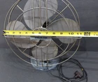 12" Polar Cub Metal Electric Fan Heavy Base Slate Blue Paint Cord Needs Replaced A.C. Gilbert 12" Metal Electric Fan 12" Polar Cub Fan Pre-owned in good condition the blades, cage and base are in nice shape The fan was tested and runs well, the oscillation button is missing, and the fan did not oscillate The electric cord has a repair section and bare wire showing through casing near the motor, cord must be replaced
