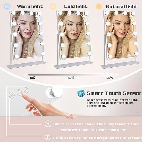 Specific Uses For Product:MakeupHas Smart Features:YesColor:White-12 BulbsItem Height:1Shape:RectangularSize:11"L x 12"WNumber of Items:1Theme:SpaceNumber of Pieces:1, 2gtin13:Does Not ApplyMounting Type:Tabletop MountType:Does Not ApplySpecial Feature:360 Degree, Lighted, Touch SensorUPC:Does Not ApplyItem Length:1Product Dimensions:11"L x 12"WFrame Material:MetalDate First Available:May 31, 2024Frame Type:FramedEAN:Does Not ApplyMaterial:MetalBrand:Does Not ApplyIs Hanging:Yesseller:Does Not ApplyFrame Color:C-12 Bulbs-normalFinish Type:MetalMPN:Does Not ApplyItem Weight:7 PoundsAssembly Required:NoItem Width:1Room Type:Bedroom