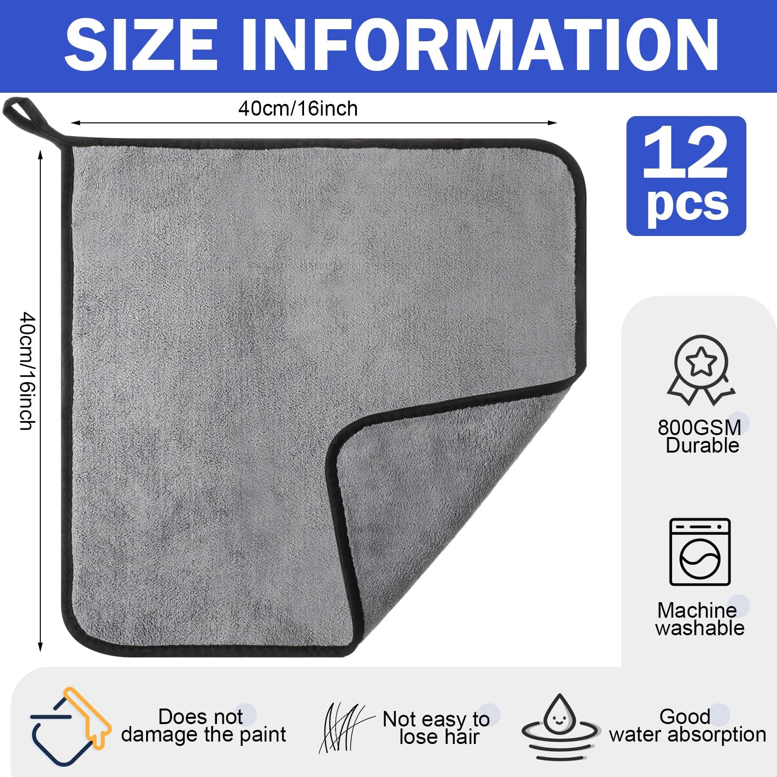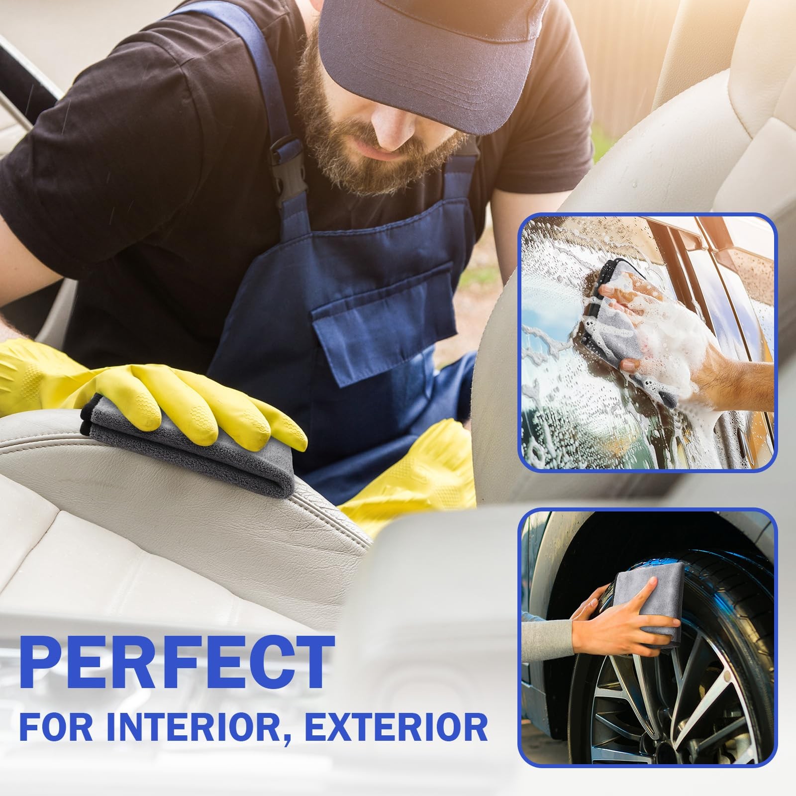 These microfiber towels are a game-changer for car cleaning! Super soft, thick, and absorbent—they pick up dust and grime effortlessly without scratching surfaces. The 16x16 size is perfect for detailing, and the 12-pack is great for sharing or keeping backups. Washes well without losing fluffiness. A must-have for any car enthusiast!