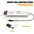 This Dimmable LED transformer is Compact, Quiet, great operating efficency, Well Compatibility, This is an 12V50W Triac dimmable power supply. with most AC wall dimmer like Lutron, Leviton and most other household dimmers. Can be used for many 12v constant voltage LED lights and other applications. Warning: Do not overload. Overload will cause the AC adapter to fail. We are not responsible for misuse of power supply. It is recommended not to exceed the AC power supply's capacity. Please calculate your load before connecting the power. Specification: Output Current: 4.15A ; Output Voltage: 12V Input Voltage: 100V-130V 50/60HZ Size dimension: 195x45x33mm NON-waterproof use for indoor dry location only. Quiet, Smooth, Full range flicker-free dimming for 12 volt LED Lighting such as LED strips, modules, light bars, puck and other LED accent lights with most wall dimmers like Lutron, Leviton, ABB and higher end Lighting control systems, also with 12 volt, low-voltage LED dimmers and Color controllers No minimum Lighting load required for wide range dimming, no de-rating is required; load up to 100% of the model’s 50 watt capacity Easy to Install, Mount, and Wire. Comes with10inch DC cord ( 2.1x5.5mm DC Jack included) can be removed for use in hard wire installations. Short-Circuit / Over Current / Over Voltage/ Low-Voltage and Auto-recovery Mode.