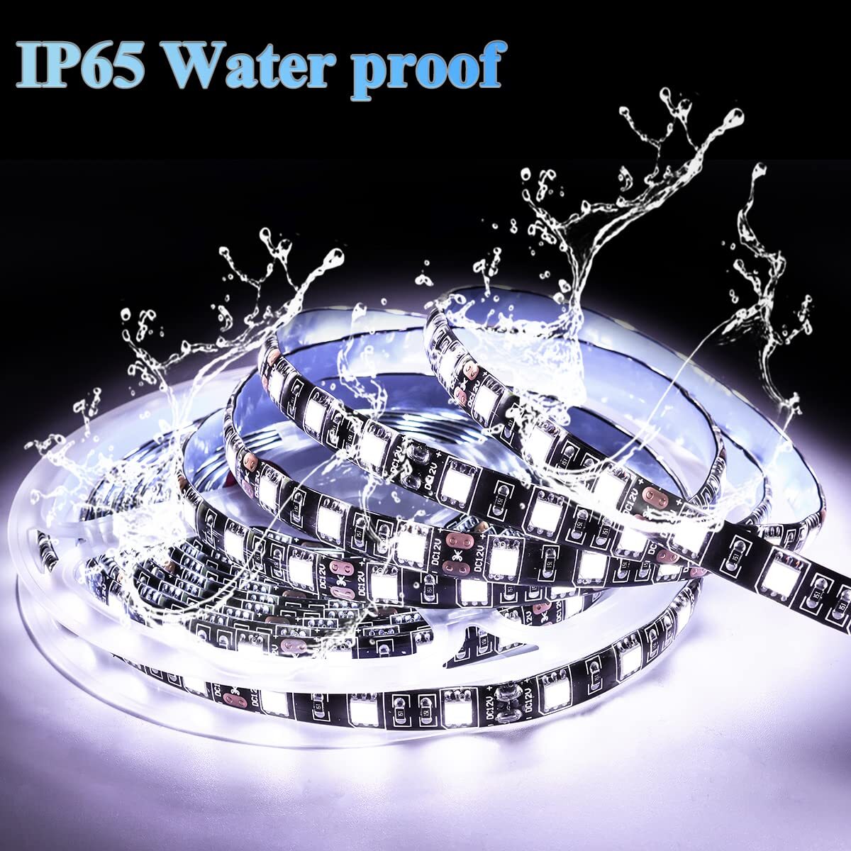 Wonderful holiday party decoration and lighting: This 12V white led light strip has the characteristics of waterproof, flexible and strong adhesion, it is a good choice for home lighting, bedroom lighting, kitchen lighting decoration, and various commercial lighting and decoration. Pick it up to show your DIY creativity. Speciations: Color: White Color tempreture: 6000-6500K LED Type: 5050 SMD Black PCB board Length: 5m/16.4ft LED Quantity: 300 pcs Weight: 0.2kg Operating Voltage: DC 12V Waterproof Rating: IP65 Long life span: 50,000+ hours Working power: 60W/16.4ft Working Temperature: -20 to 50℃ Luminous Flux: 4000-4500 Lumens/16.4ft Size: 500CM(16.4ft)x 1.0CM x 0.30CM(L*W*T) Recommended power supply: 12V 5A (not include) Tips: ① Keep the connections and end tail side indoors or in waterproof boxes when using outdoors. ② The LED light bars need to be unfolded during work to better dissipate the heat, otherwise the temperature of the light bar will rise sharply in a short time. ③ After the LED beads with the same color temperature are sprinkled with waterproof silica , the silica will have the effect of astigmatism. The color temperature of the waterproof version looks higher than that of the non- waterproof version to the naked eye. Package include: 1 x 16.4ft White 5050 300LEDs Waterproof light (not include the power adapter and dimmer). [Transparent & Safe]: This white lights includes 300 LEDs 5050 SMD, black PCB board, it is more transparent and brighter than ordinary lights. This led tape lights works with 12 V direct current, which is safe for adults and children [Cuttable, Dimmable]: Every 3 LEDs can be cut and spliced, you can DIY into any special residential decoration or design unique commercial logo. This 12 V led light strip can also be dimmable, you can connect a dimmer to control the brightness (not include) [Flexible, Waterproof & Sticky]: This led light is very flexible, it can be bent into the shape you want and adapt to various corners. The back is a strong sticky glue, the installation is stable and not easy to fall. The outer layer of the led rope light is wrapped in silicone, IP 65 waterproof, suitable for indoor and outdoor use. It meets your needs for home decoration or any commercial use [Versatile Use]: This 16.4 ft white waterproof flexible light is suitable for kitchen lighting, bedroom, mirror, dresser, living room, TV, hallway, stairs, bookcase, kitchen, bar, workbench lighting to illuminate and decorate and almost anywhere [Note]: The package contains a 16.4 ft roll of of white light strip. (Not include the power supply and dimmer). You need to buy 12 V 5 A power adapter or a current of more than 5A separately for this to work