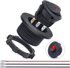 Unique Design:The rocker switch has High texture flame-retardant shell and nut.The special design makes the installation and disassembly more convenient and simple.The mounting hole of this 12V rocker switch with housing is 1.1 inches (29mm). Blue LED Light :This round toggle switch has a 12 volt blue LED light. When the switch is turned on, the LED lights up at the same time. Make it easy to see in the dark and can indicate the working state of the equipment. This 12V switch has 3 connecting wires. Each wire has a slot to facilitate pin insertion/extraction. Application: This 12 volt switch can be widely applied to marine,cars, boats, ships, automotive. Pin Quantity: 3 pin,Contact Type:SPST. Position:ON-Off 2 Position. Rating:20A 12V DC.Total Size: 37x30mm/1.45''x1.15''(L*H).Product package:1pcs rocker switch+1pcs Shell+3pcs connecting wires Product Description 20A 12VDC Round Rocker Switch with Shell SPST ON Off 3 Pin 2 Position Red DOT LED Light Illuminated Rocker Toggle Switch for Car Truck Boat DIY Modification Total Size: 37x30mm/1.45''x1.15''(L*H) When the switch is turned on, the light is on Shell Thread Size:27mm / 1.1". With Mounting panel housing. Pin Quantity: 3 pin, Contact Type:SPST. Position:ON-Off 2 Position. Rating:20A 12V DC.
