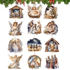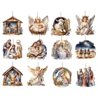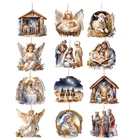12X Christmas Carved Wood Keepsake The Birth Of Jesus Decor Christmas Tree Decor