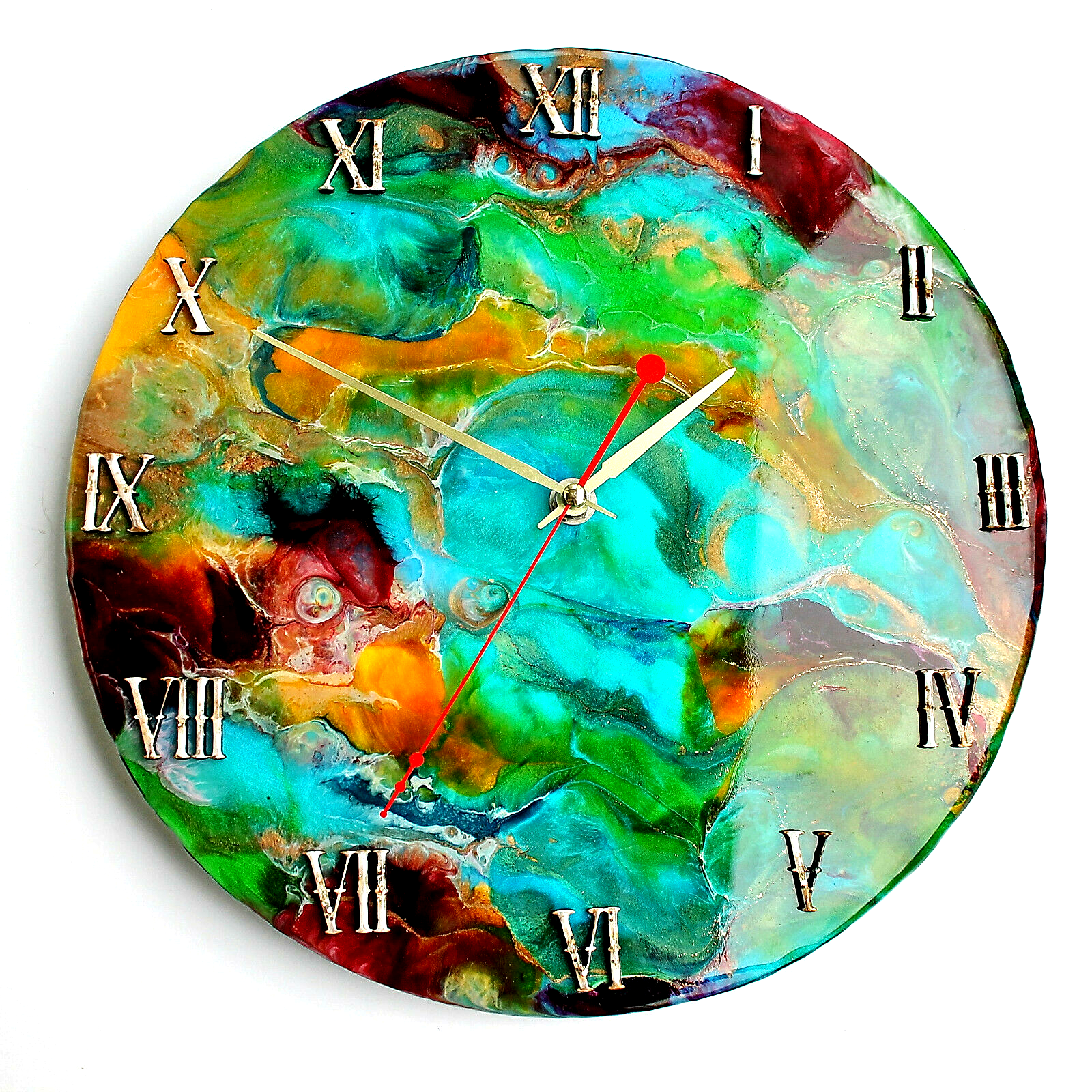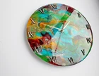 This beautiful wall clock made by me. It`s painting on canva with resin. Mechanism I use is absolutely silent.