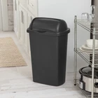 The 13 Gallon Roll-Top Wastebasket features a lid that rolls up, stays open and returns closed, all with minimal effort. The large opening allows for disposal of oversized items while leaving the lid rolled up. The design coordinates with any kitchen décor and this wastebasket features an easy-to-clean textured surface. It accommodates a standard 13-gallon trash liner or it can be used to collect recyclable material. This Wastebasket is ideal for all areas of the home including kitchen, garage, basement or even the office. It's durable design will hold up to regular day-to-day use and confidently conceal contents. The overall assembled dimensions of this item are 18 3/8" L x 12 3/8" W x 28 3/8" H. Adult Plastic 13 Gal. Roll Top Wastebasket Black: Outside Dimensions: 18 3/8" x 12 3/8" x 28 3/8" Large 13 Gallon capacity makes this the ideal size for kitchen use Single unit option Classic color to complement all décor - Black The 13 Gal RollTop lid opens with a touch and stays open for easy disposal Lid rolls up, stays open and returns closed with minimal effort Coordinates with any kitchen décor Easy-to-clean textured surface Accommodates a standard 13-gallon trash liner Ideal for use in the Kitchen, Bathroom, Bedroom, Dorm Room, Mudroom or Basement BPA-free and phthalate-free Made of easy to clean plastic No batteries required