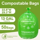 Convenient Size and Packaging: Compostable Trash Bags|13 Gallon,50 Bags Per Roll.These bags are a must-have for a variety of scenarios. For the green-fingered home gardener, they're a breeze for collecting kitchen scraps like vegetable peels, coffee grounds, and fruit cores. You can keep one under the sink or by the back door for effortless waste collection. They're also great for yard waste such as fallen leaves and grass clippings, helping you turn them into nutrient-rich soil for your garden beds. BPI Certified: Our compost trash bags are BPI certified and meet the ASTM D6400 standard for compostability, ensuring they are safe for use in California and other regions with strict environmental regulations.bags come from plants,will convert to H₂O,CO₂ and water in 180 days under industrial composting condition,and will turn to organic fertilizer for the growth of plants. Made from Plant-based PLA and PBAT:The combination of PBAT and PLA results in compost bags that are not only strong and versatile but also environmentally responsible, offering a sustainable alternative to conventional plastics. Usage & Storage:To extend the shelf life of unused bags, store them in a cool, dry, and dark place, and aim to use them within one year of purchase. Only buy as many as you can use within nine months. For hygiene purposes, it is recommended to change compost trash bags every two days. More Responsible Choice:We all share the responsibility of saving the Earth. compostable bags are the ethical choice for a cleaner environment. Replace harmful plastic kitchen trash bags with compostable ones to reduce environmental waste.