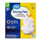 Trash cleaning becomes a breeze with the Strong Stretch Tall Kitchen Drawstring Bags with Citrus Scent. Leak-proof, tear-proof, and puncture-resistant, these 80-count bags are flexible enough to resist tearing from sharp or heavy trash. The Citrus Scented bags feature dual odor control to block and neutralize odors, so you don’t have to worry about any unwanted smells in your kitchen. Experience the superior quality of Strong Stretch Tall Kitchen Drawstring Bags with Citrus Scent in your home. Products offer families affordable, high-quality grocery and household consumables options. Our wide range of product categories spans groceries and household consumables to meet your family’s every need. Strong High Stretch Kitchen Drawstring Bags, Citrus Scent, 13 Gallon, 80 Count. Convenient drawstring closure makes it easy to lift, carry, and throw away. Perfect size for all your trash needs Dual odor control blocks and neutralizes odors Leak, tear, and puncture resistant 13 gallon capacity (49.2 liters) Dimensions: 23.75" x 24.875"
