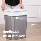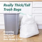 PREMIUM MATERIAL – LDPE Polyethylene – these extra strong -1.2 mil - tall kitchen trash bags are built to withstand heavy loads. The high molecular density ensures strength, preventing tears when handling waste DURABLE DRAWSTRINGS – strong drawstring it is enough to lift the weight of a larger capacity than the garbage bag itself. The durable drawstring ensures that the garbage stays in bag. No more struggling with flimsy ties or messy spills - simply pull, cinch, and dispose LEAK-PROOF VERSATILE BAGS – Our drawstring garbage bags are designed to create a barrier that effectively contains liquids, ensuring no leaks, even when dealing with wet waste. From kitchen scraps to household items, these bags adapt to different disposal needs, making them versatile for use NO-TEAR DESIGN – The individual bags are pre-separated within the rolls, so don’t need to mess with tearing along any hard-to-find perforations. Just easily pull the bags one-by-one from the box CONVENIENT PACK – containing 40 unscented plastic bags of 25” x 30” so there is no fumbling around when you need a replacement bag